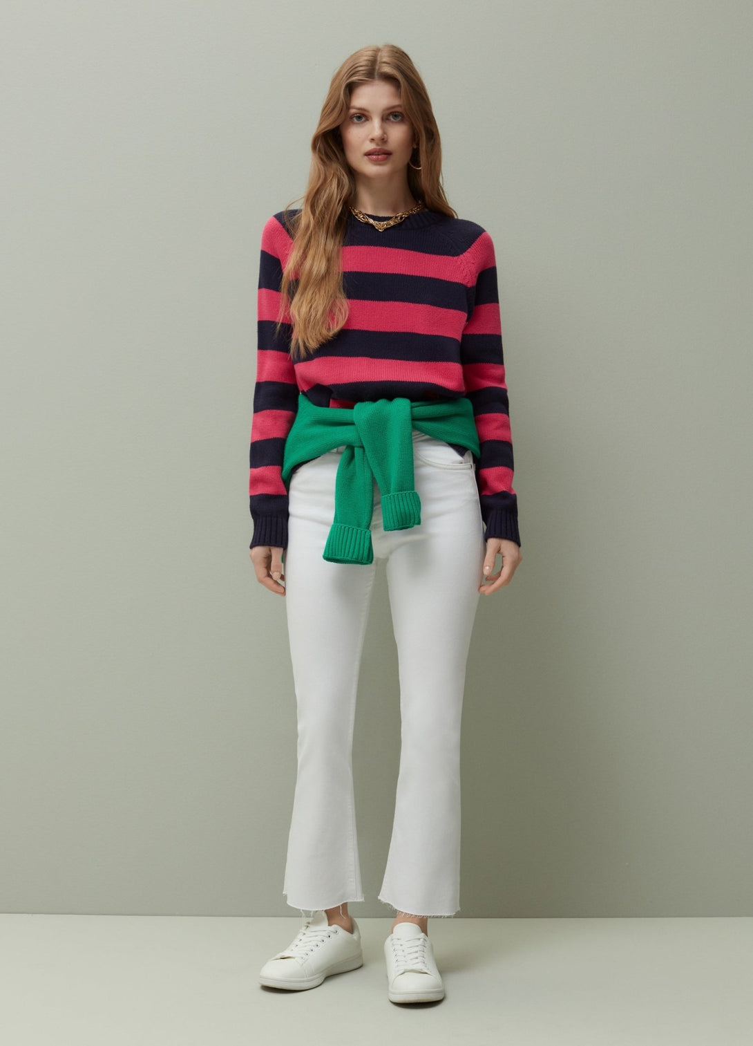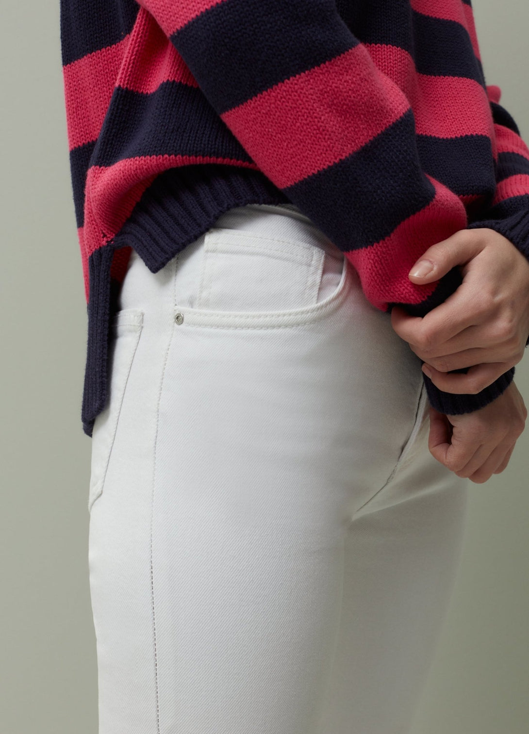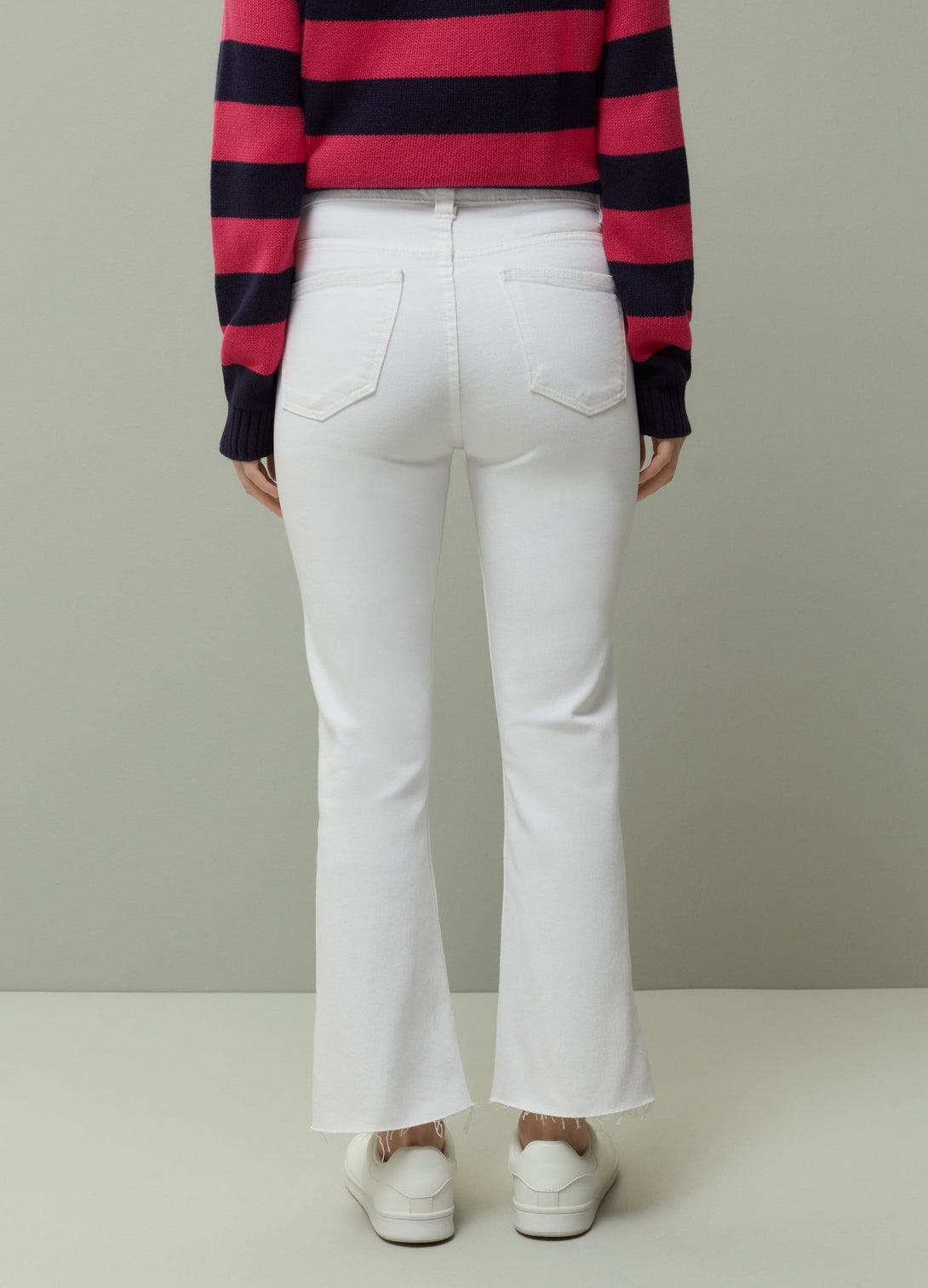 PIOMBO flare-fit jeans in stretch cotton. Ankle length. Five pockets. Hem with raw edge. Zip and button fastening.
