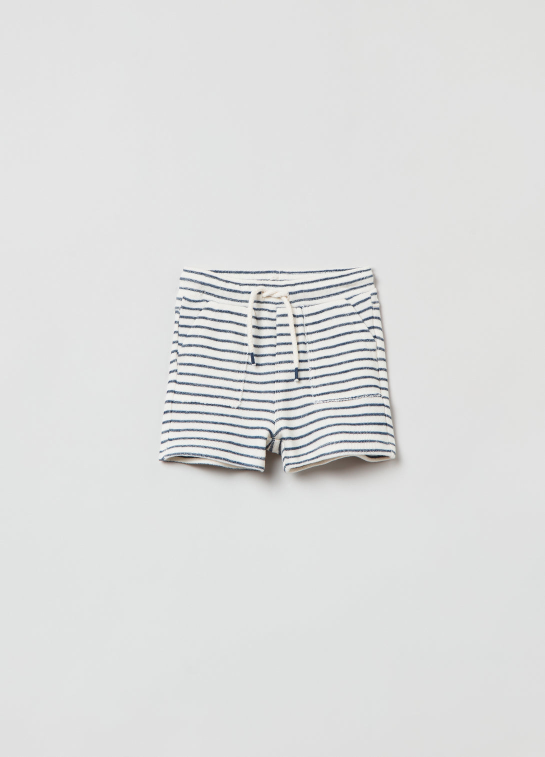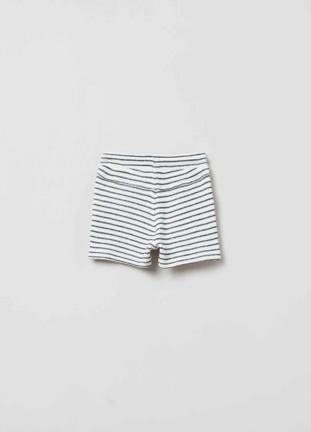 Shorts in lightweight 100% cotton plush with drawstring. Two front pockets. Striped pattern.