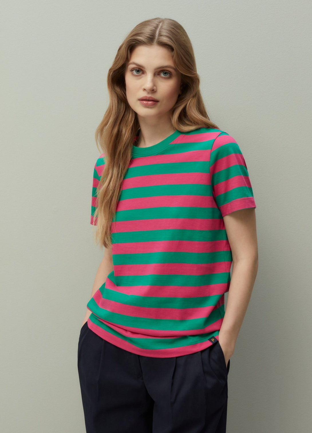 PIOMBO 100% Supima cotton T-shirt with striped pattern. Round, ribbed neck.