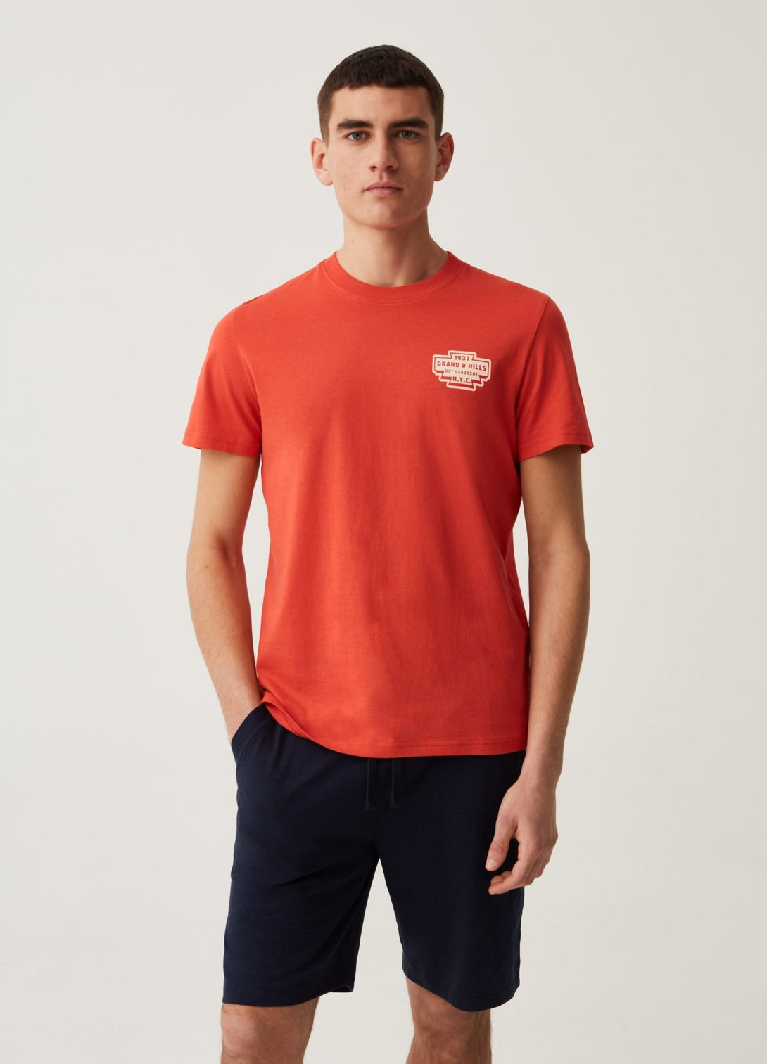 Grand&Hills Bermuda jogging shorts in 100% cotton slub with drawstring. Two slant pockets. Palm print and Grand&Hills logo on the side.