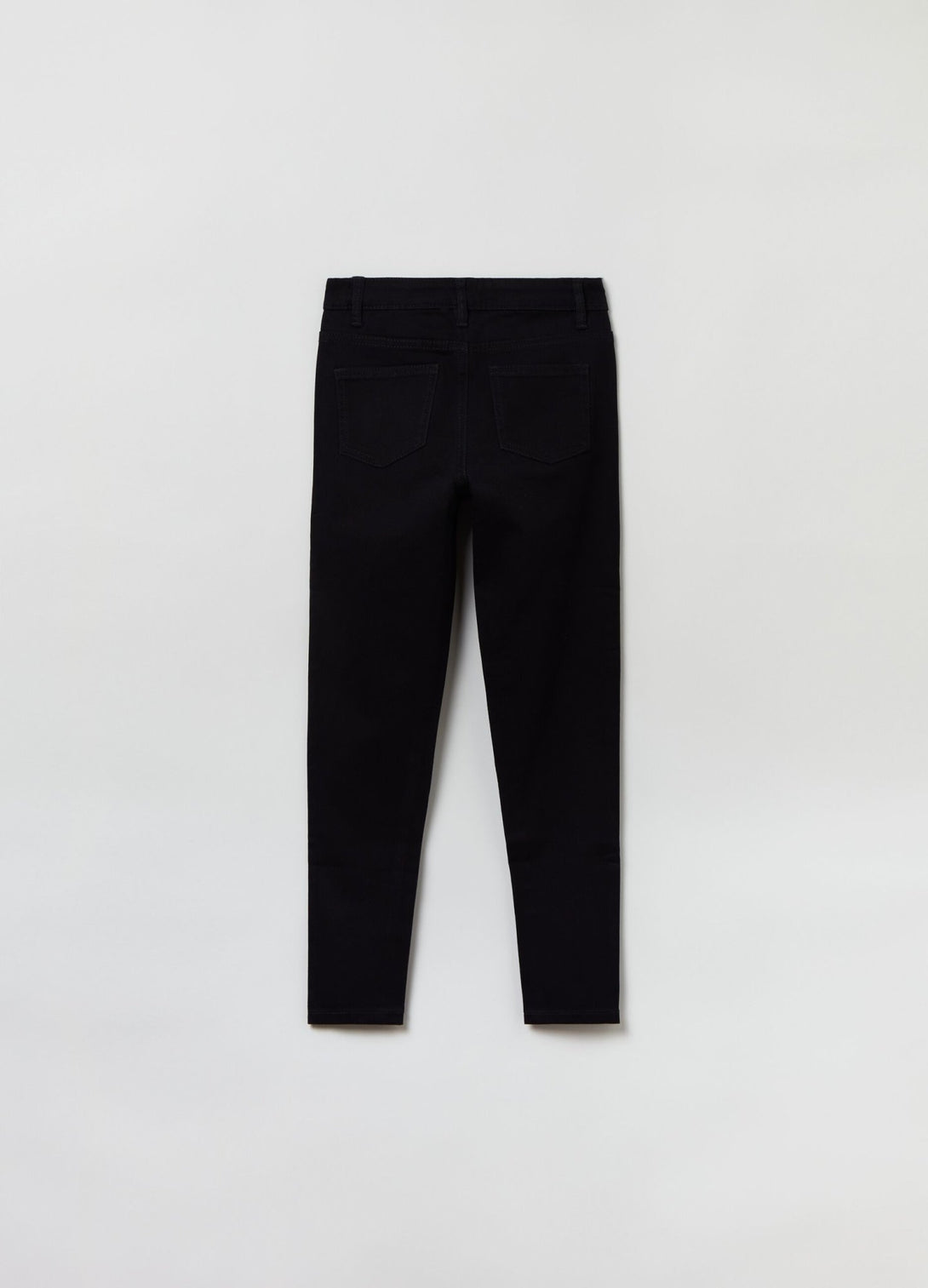 Skinny-fit trousers in stretch cotton. Five pockets. Zip and button fastening.