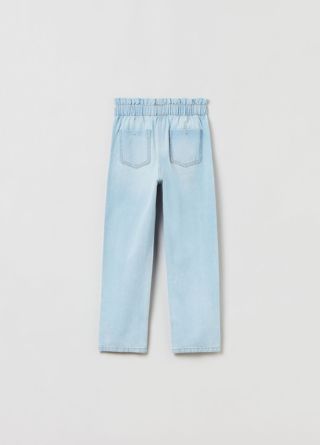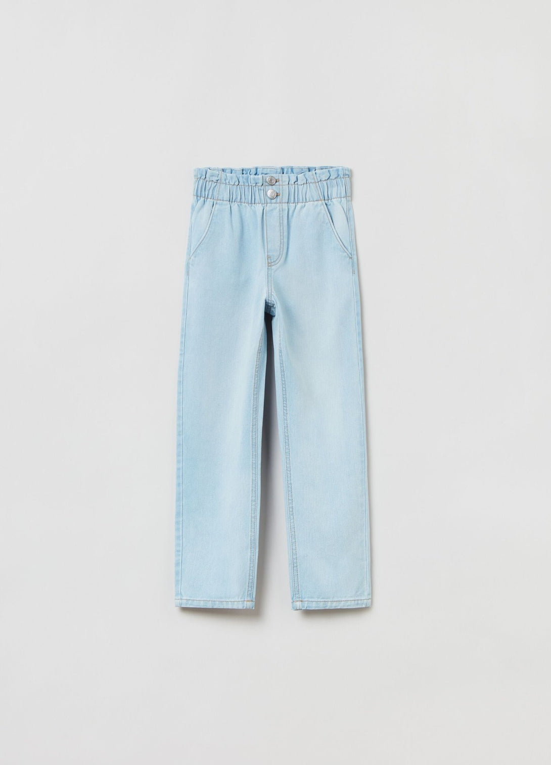 Paper bag jeans in 100% cotton with fading. Two slant pockets and two patch pockets on the back. Button fastening.