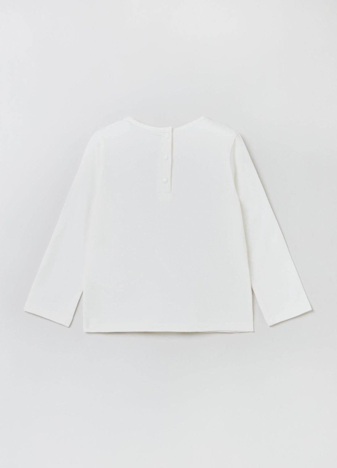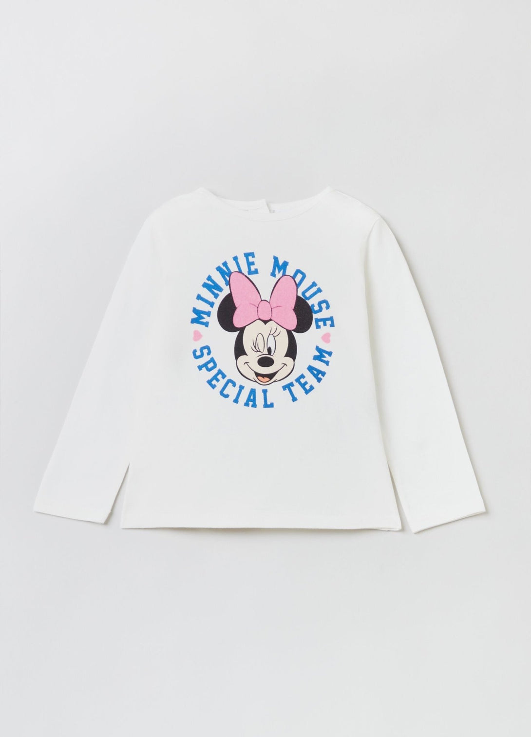 Long-sleeved T-shirt in stretch cotton Round neck with snap button fastening on the back. Disney Baby Minnie Mouse print with lettering on the front.