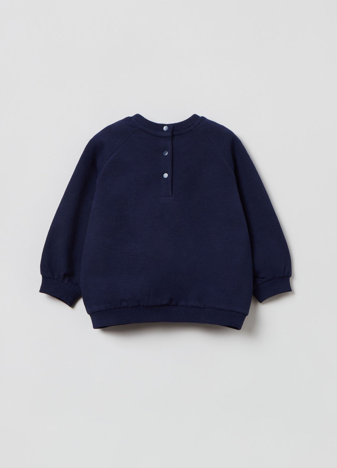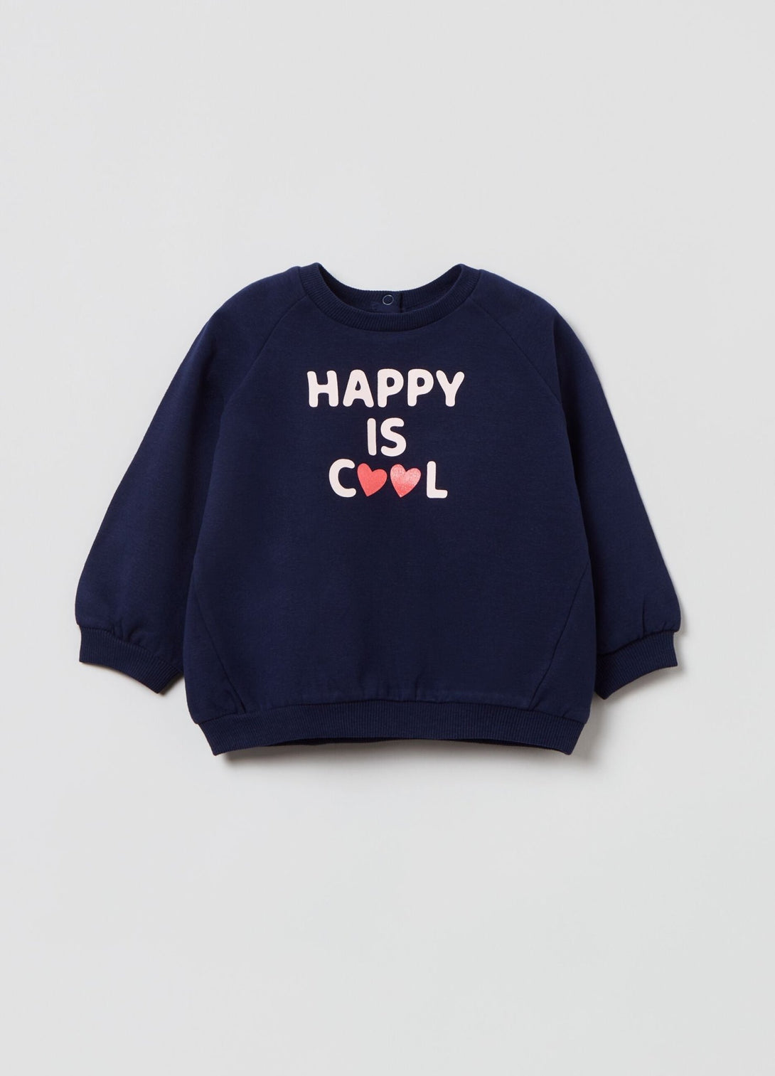 Stretch cotton sweatshirt with round neck. Raglan sleeves. Lettering print with glitter hearts on the front. Ribbed neck, cuffs and hem. Press-stud fastening on the back.