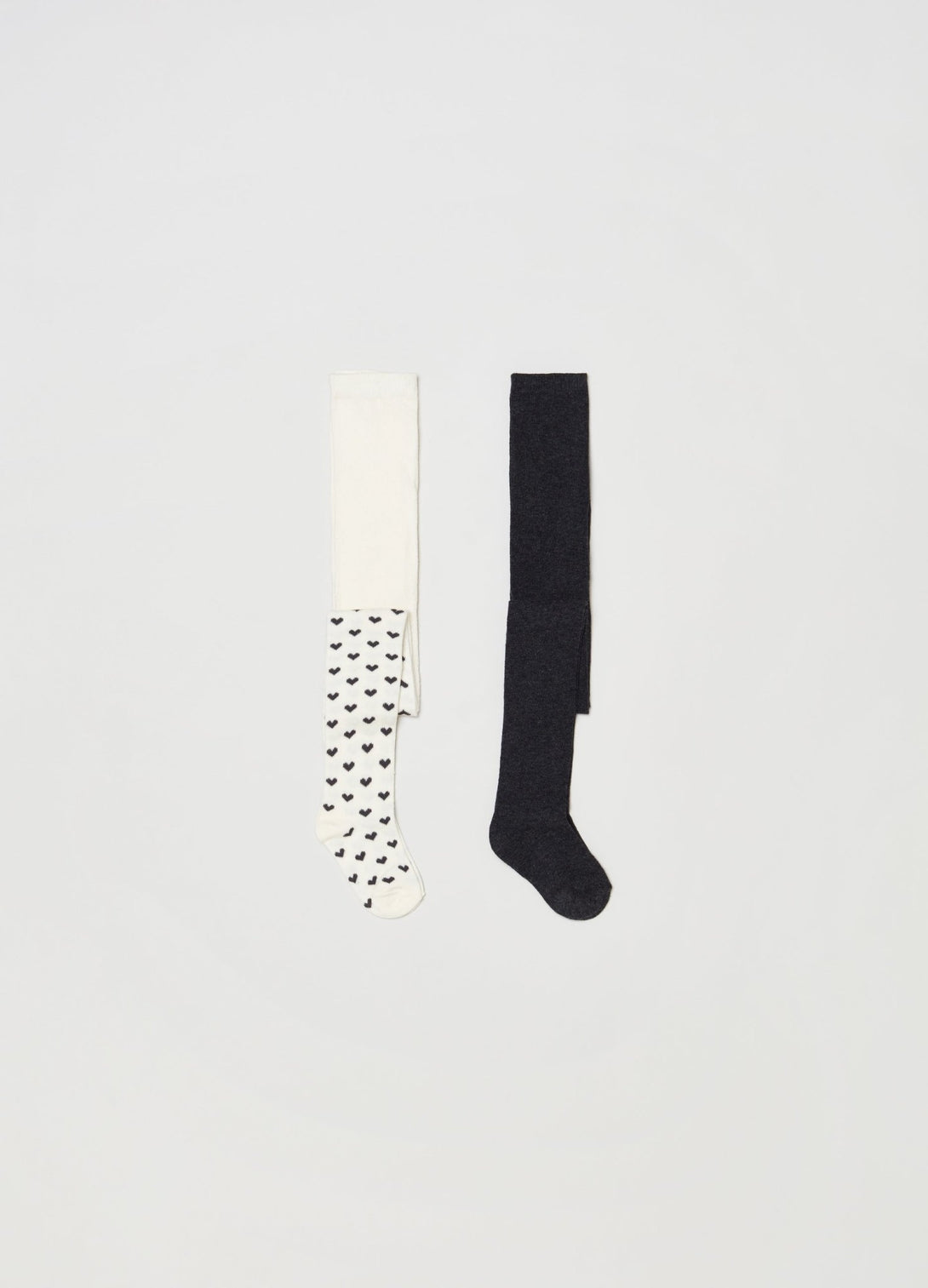 OVS Girls 2 Pack Heart Print and Plain Tights