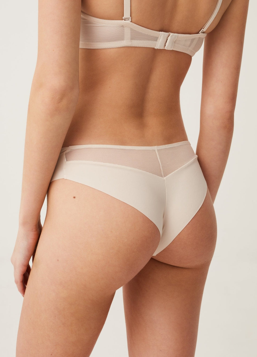 Microfibre Brazilian-cut briefs with mesh insert on the back.