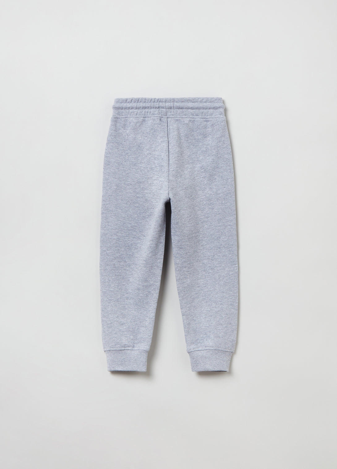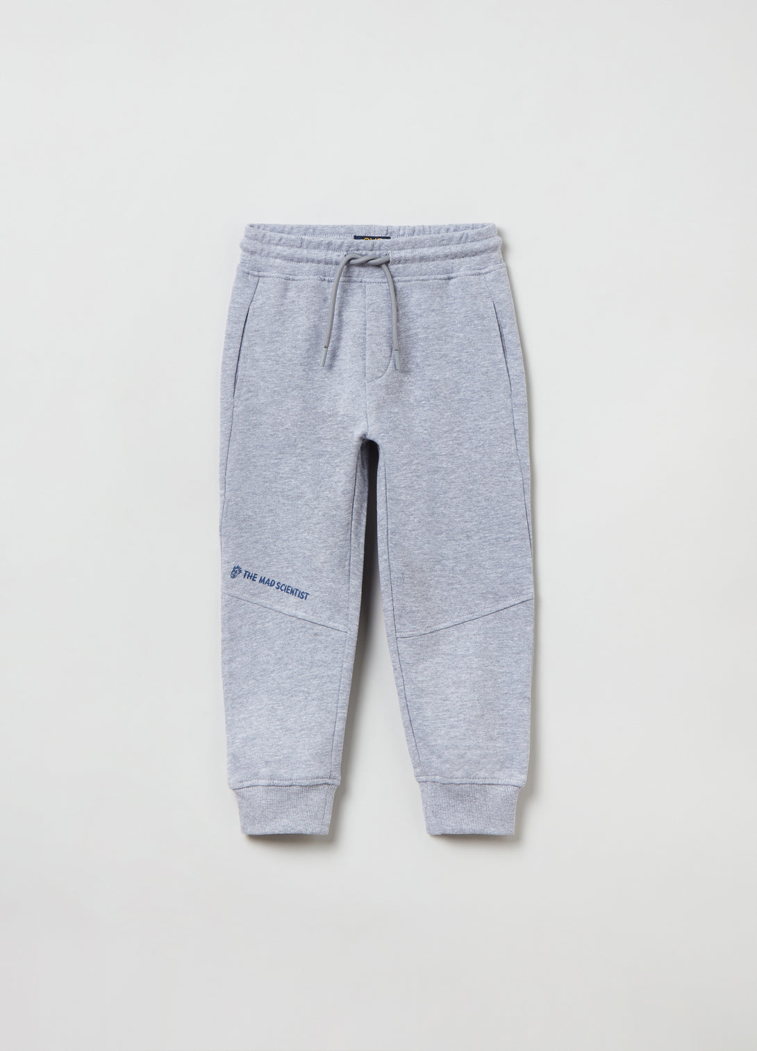 Plush joggers in mélange viscose and cotton with drawstring. Two vertical pockets. Printed lettering on the side. Ribbed ankle cuffs.