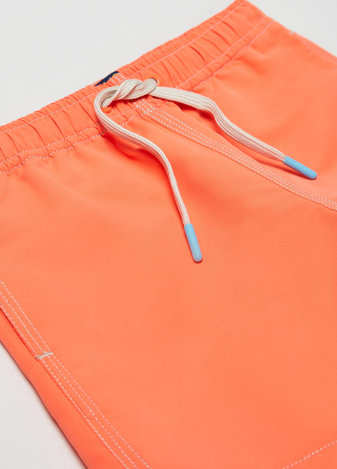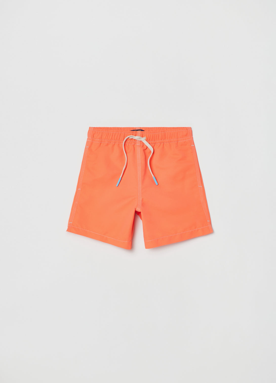 Swimming trunks with drawstring and contrasting stitching. Two vertical pockets. Side slits. This item is made using recycled polyester.