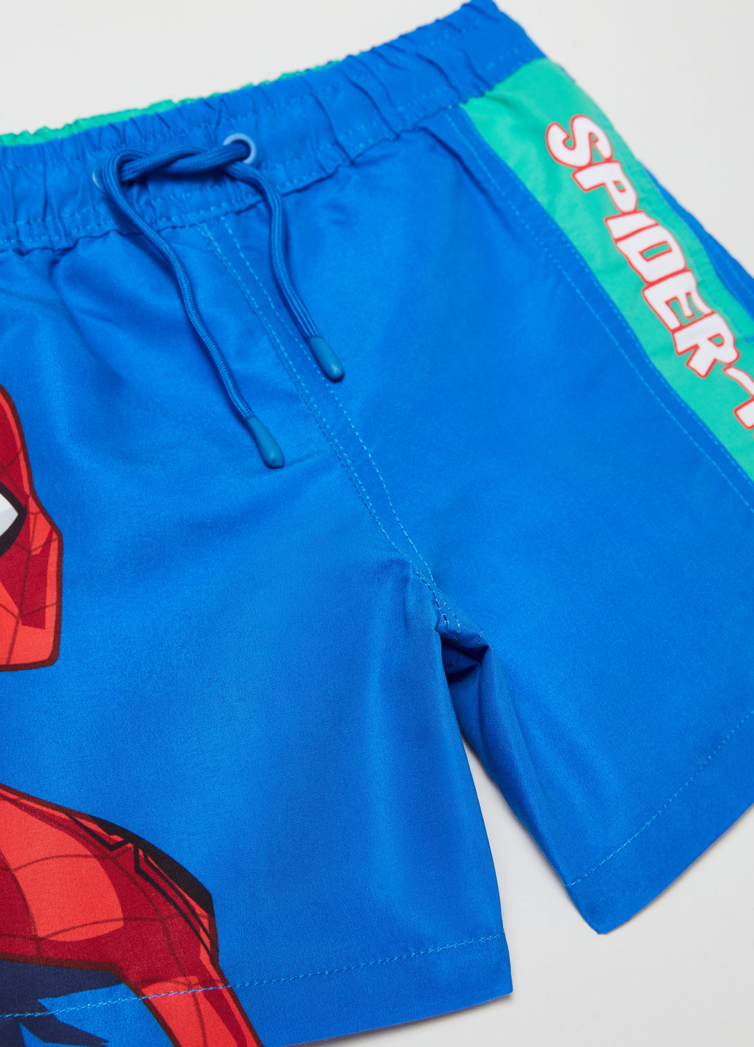 Swimming trunks with drawstring. Marvel Spider-Man print on the front. Two vertical pockets and one patch pocket on the back.