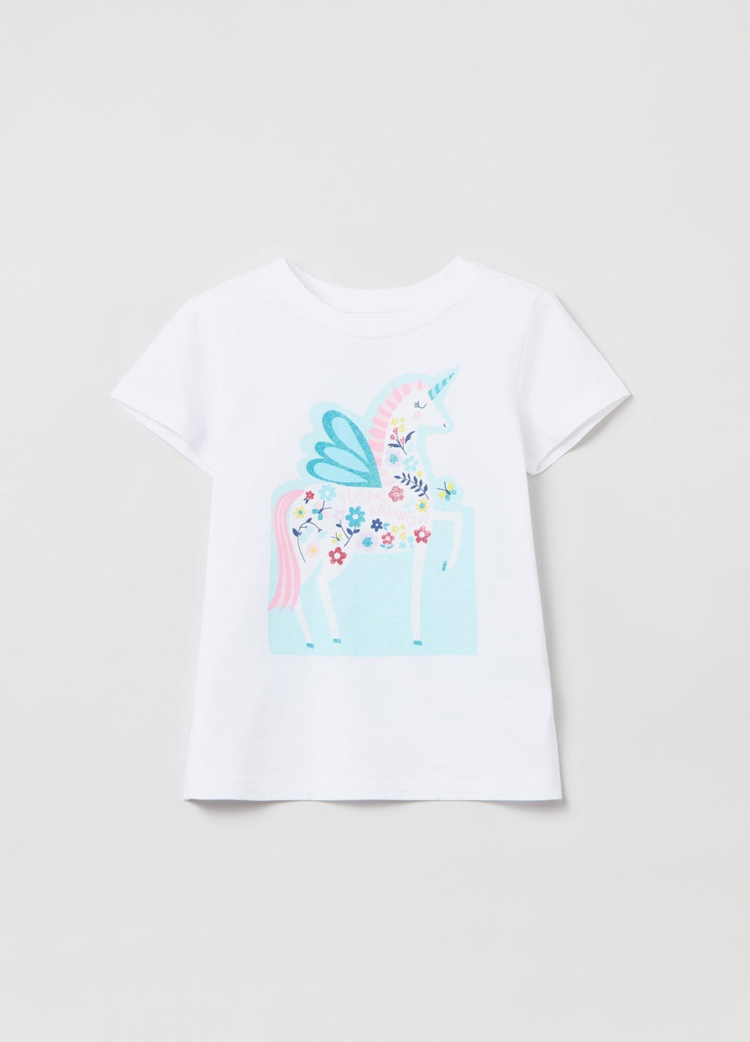 100% cotton T-shirt. Round neckline. Unicorn print with glitter details.