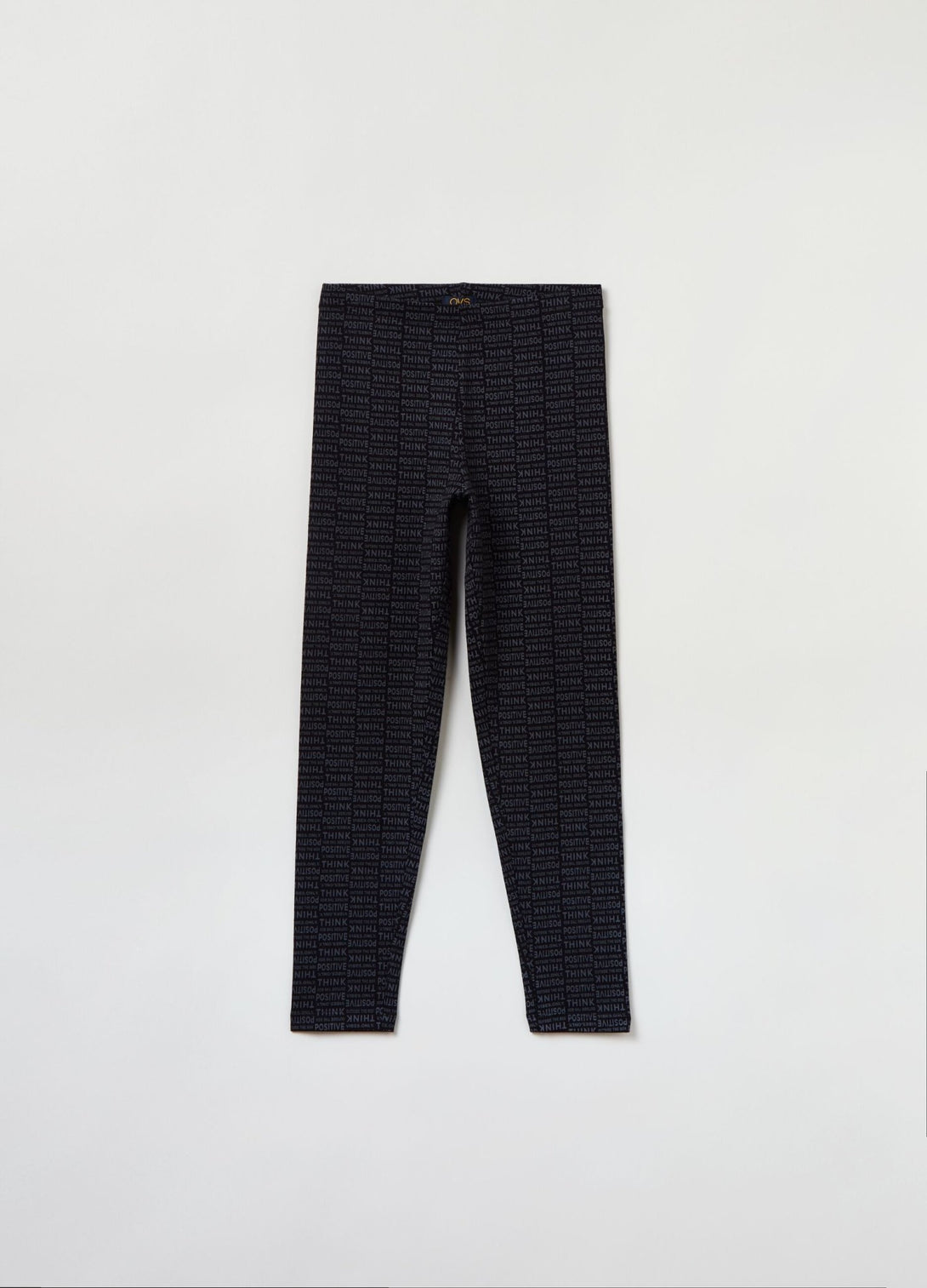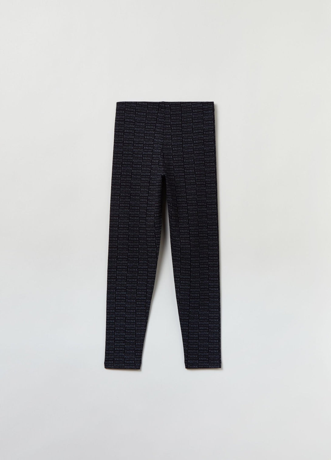 Stretch cotton leggings with elastic waistband. All-over printed lettering.