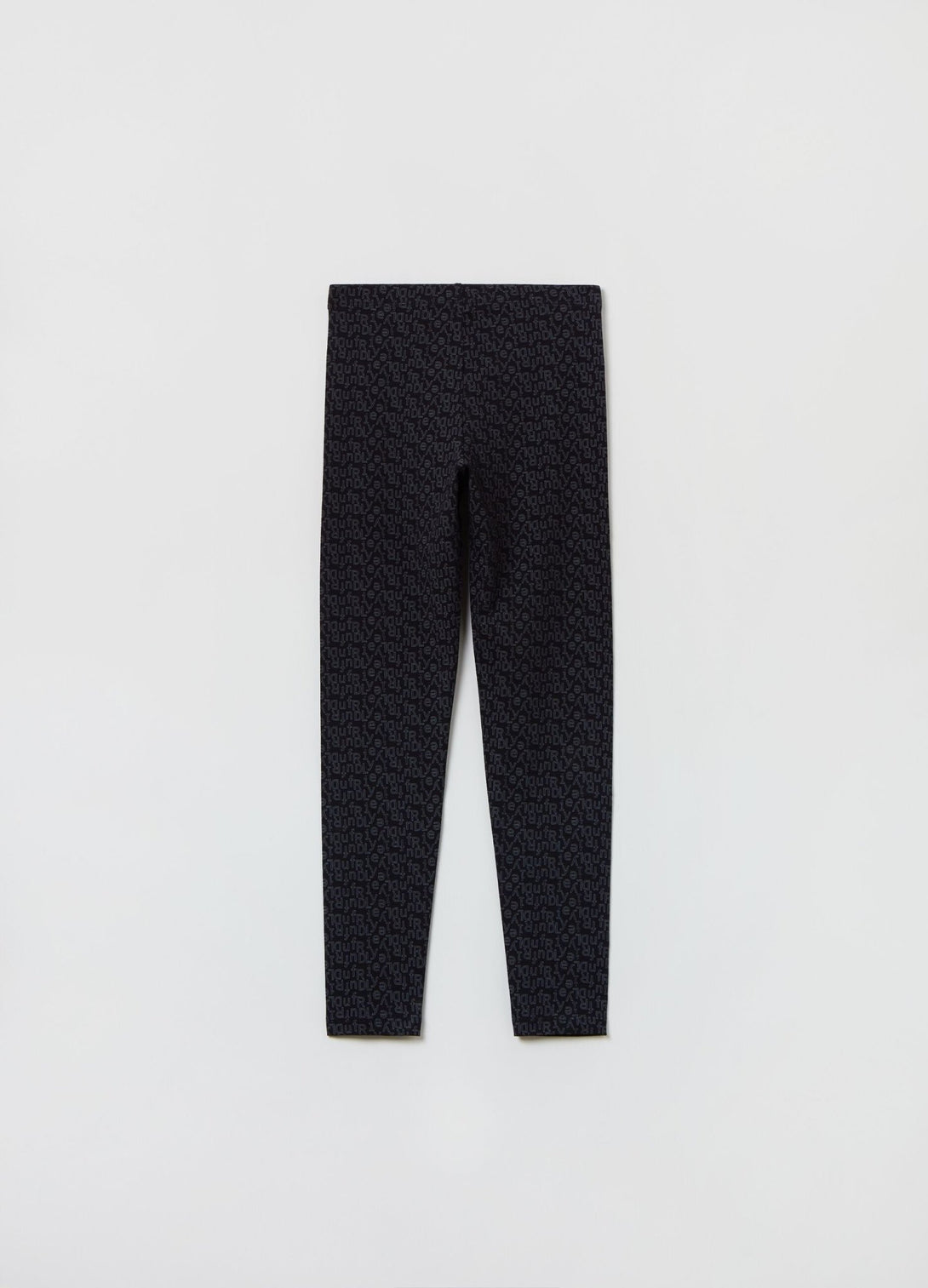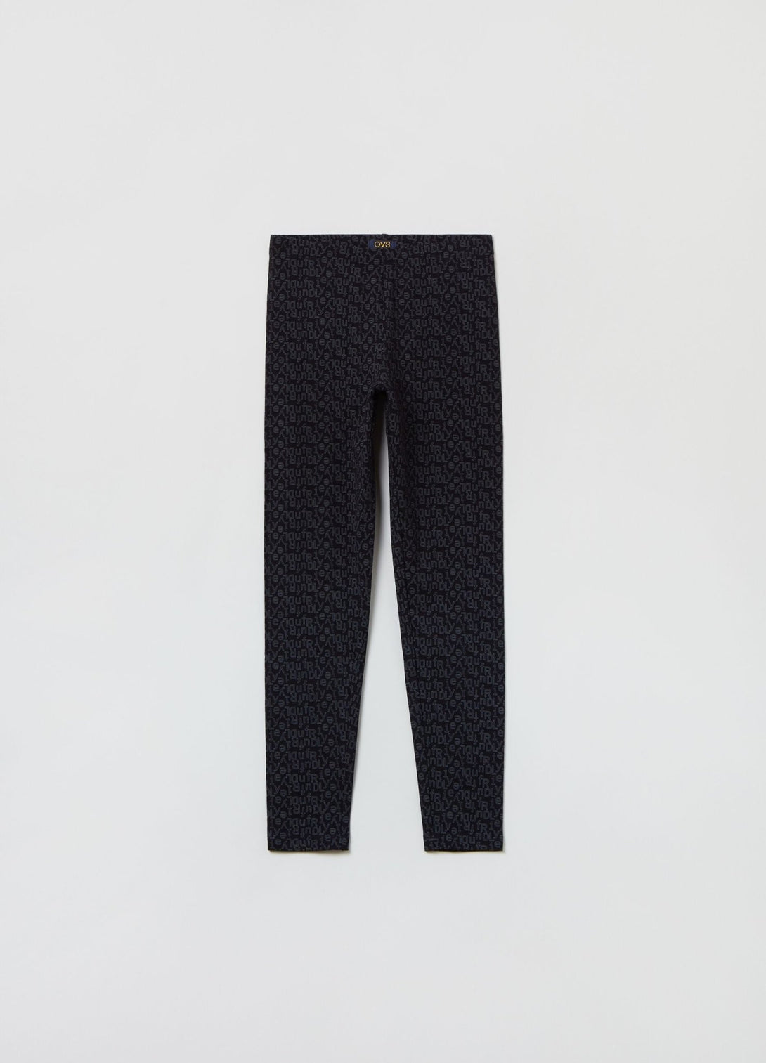 Stretch cotton leggings with elastic waistband. All-over printed lettering.