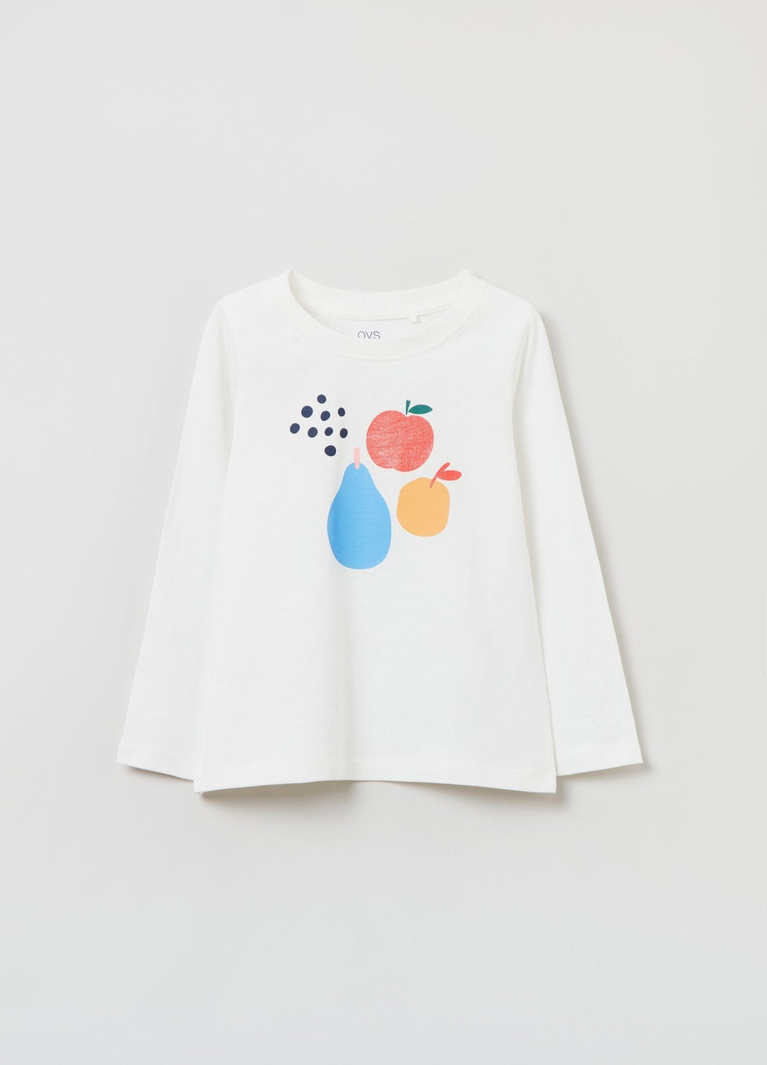 100% cotton T-shirt with long sleeves. Round ribbed neck. Fruit print with glitter on the front.