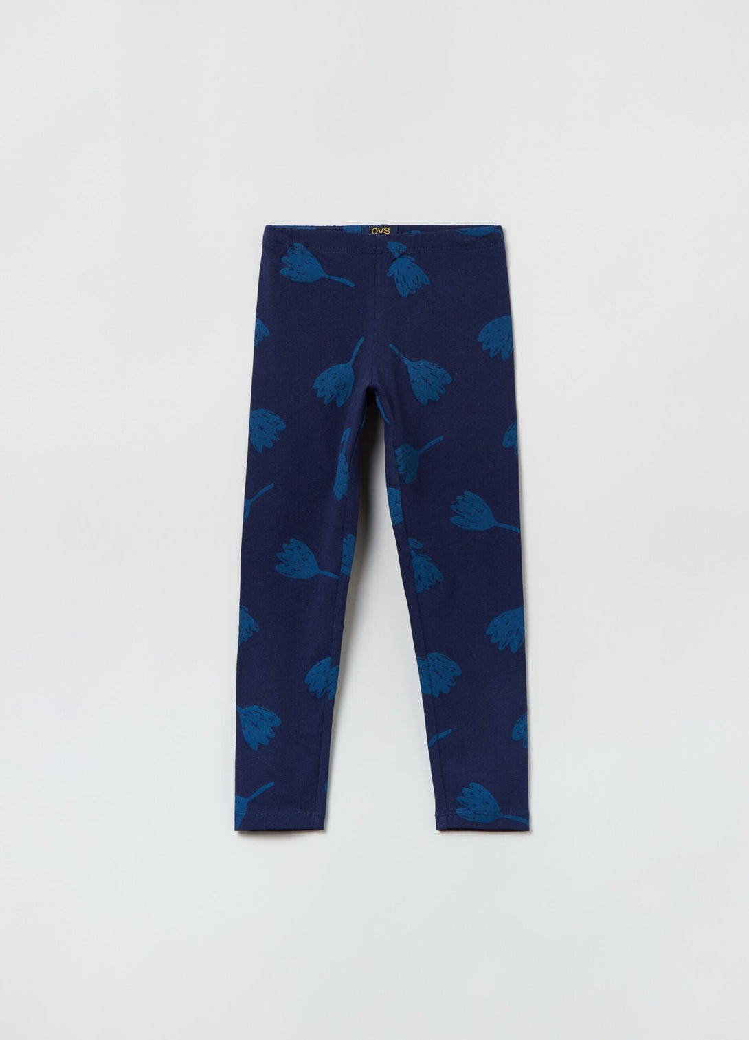 Stretch cotton leggings with elastic waistband. All-over floral print.