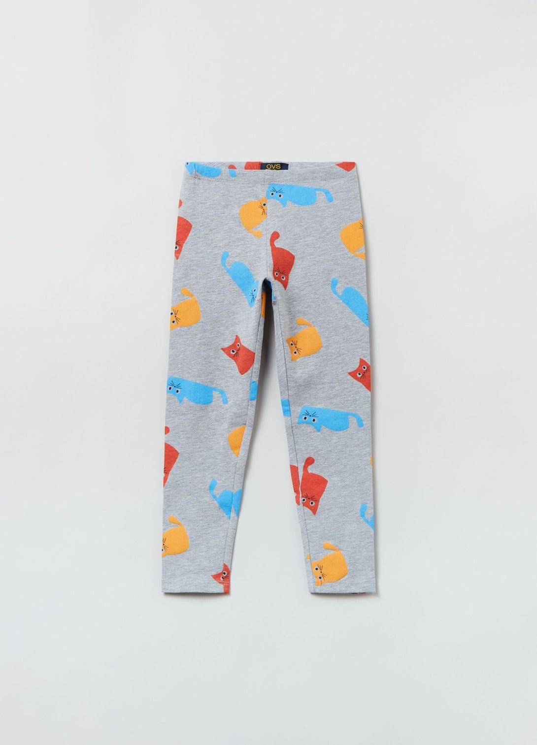 Stretch viscose and cotton leggings with elasticated waist. All-over kitten print.