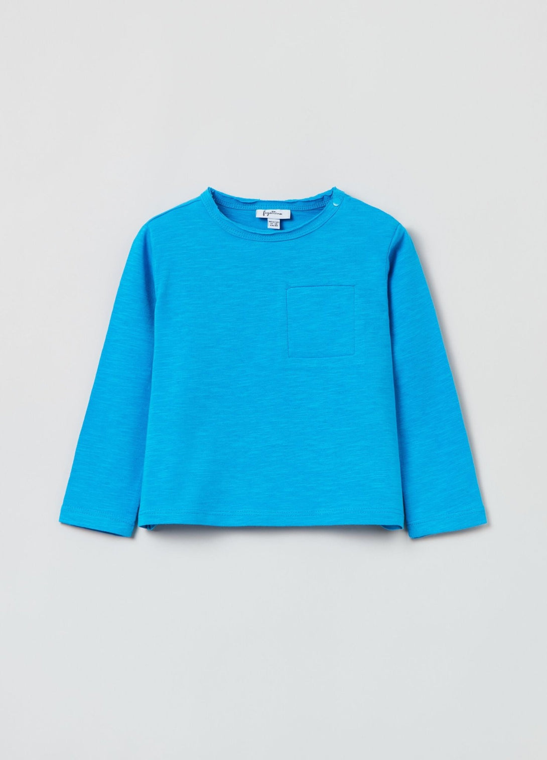 100% slub cotton T-shirt with round neck. Faux chest pocket. Snap button fastening on the shoulder.