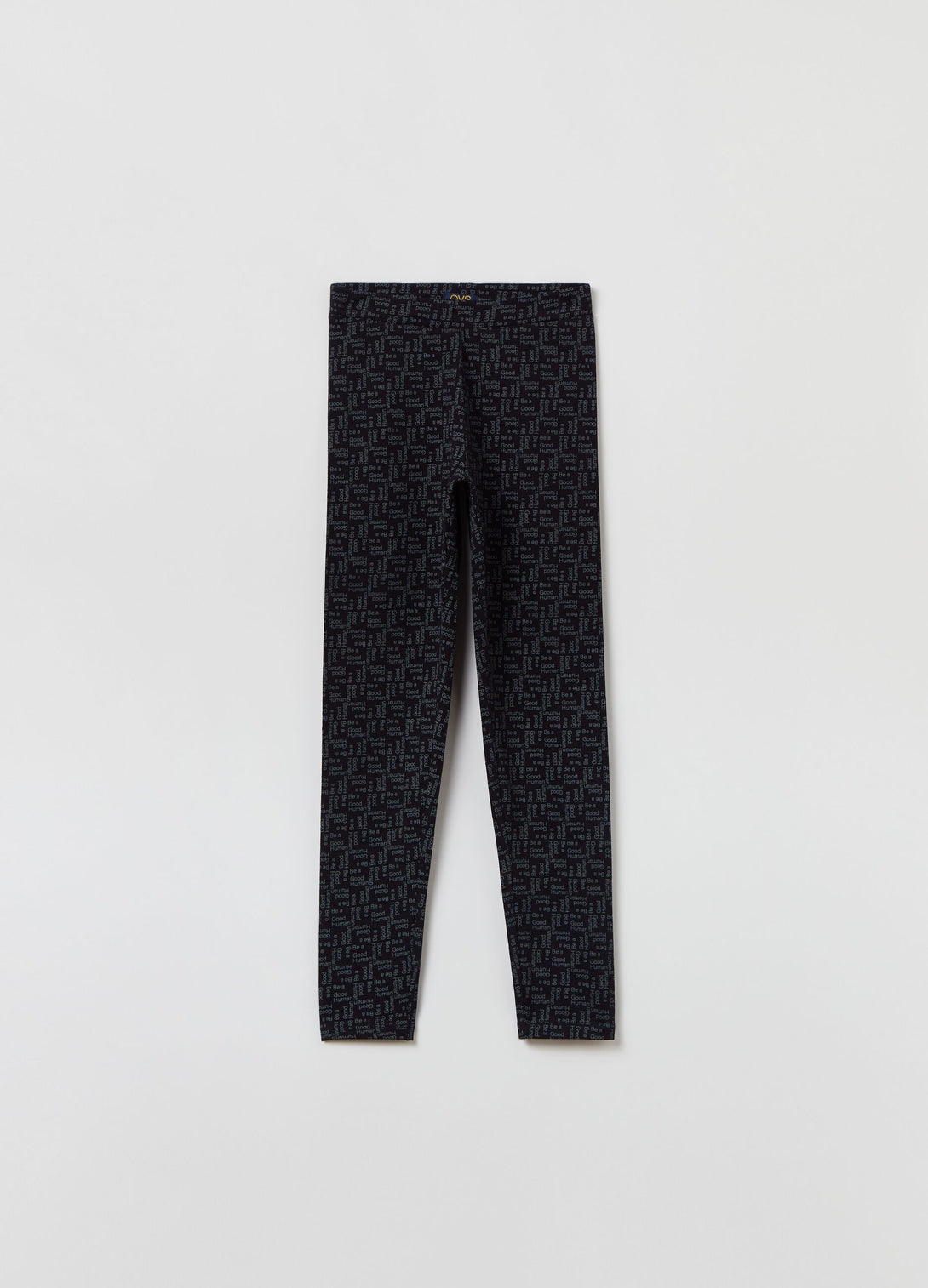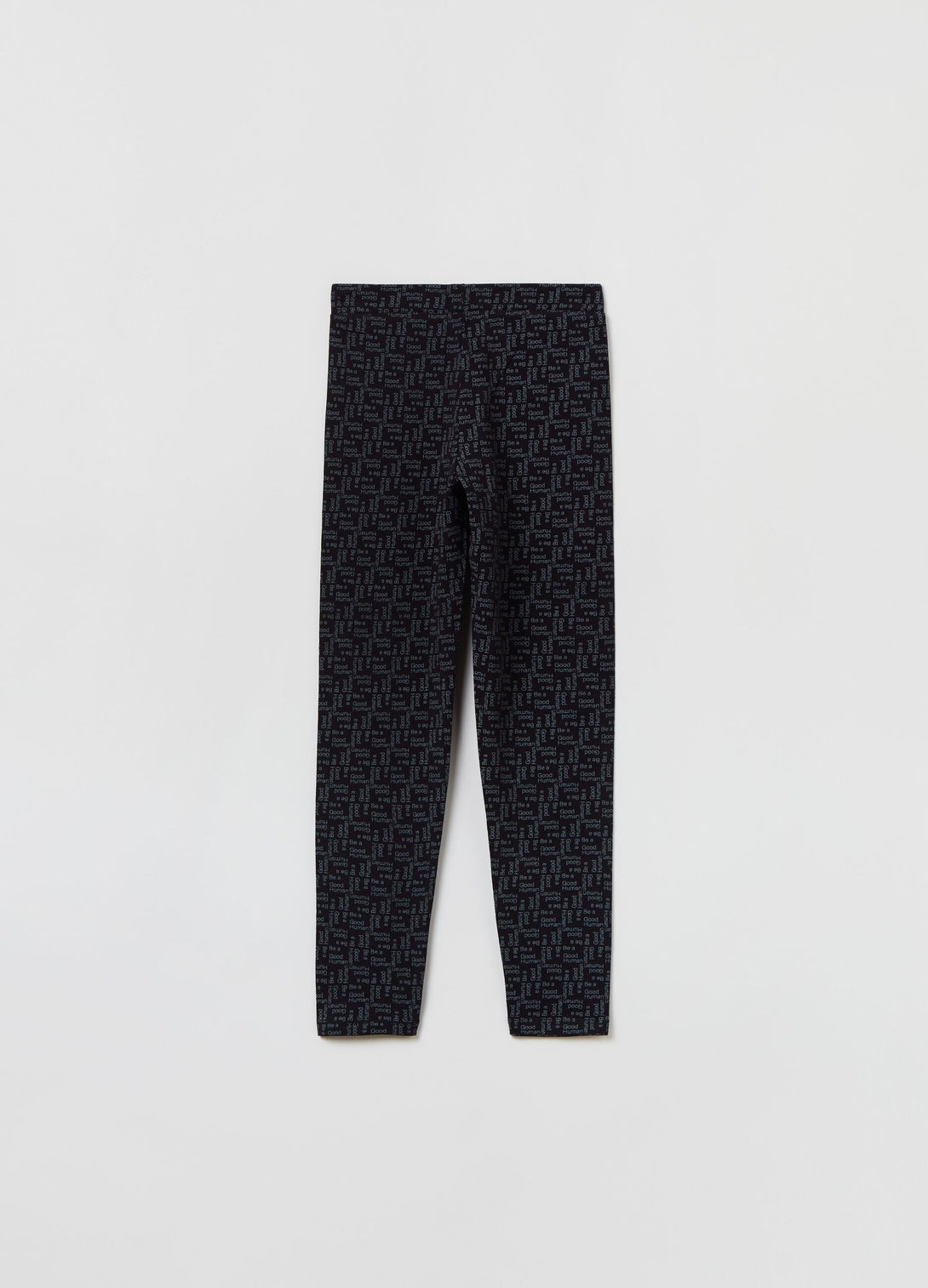 Stretch cotton leggings with elastic waistband. All-over printed lettering.