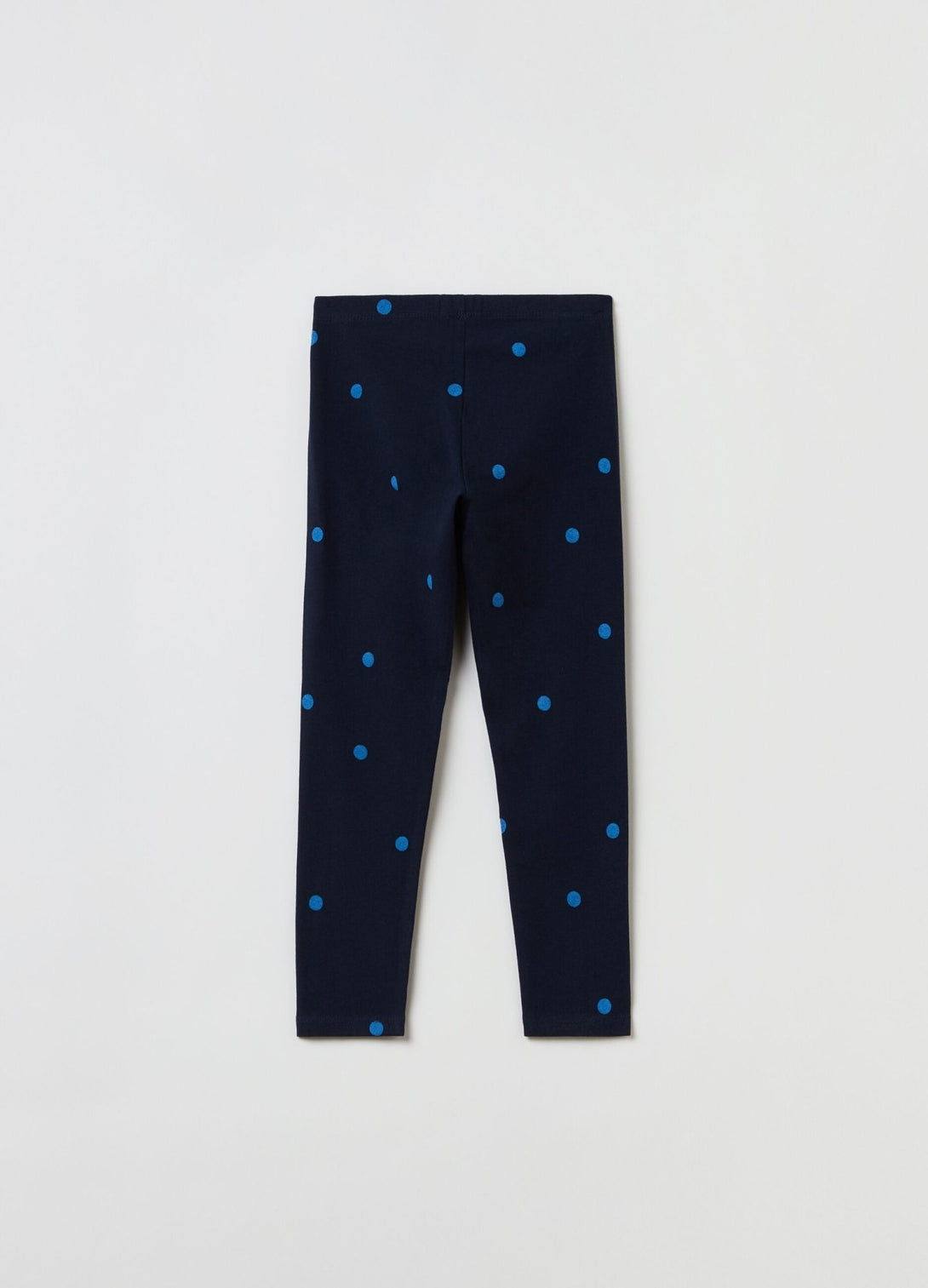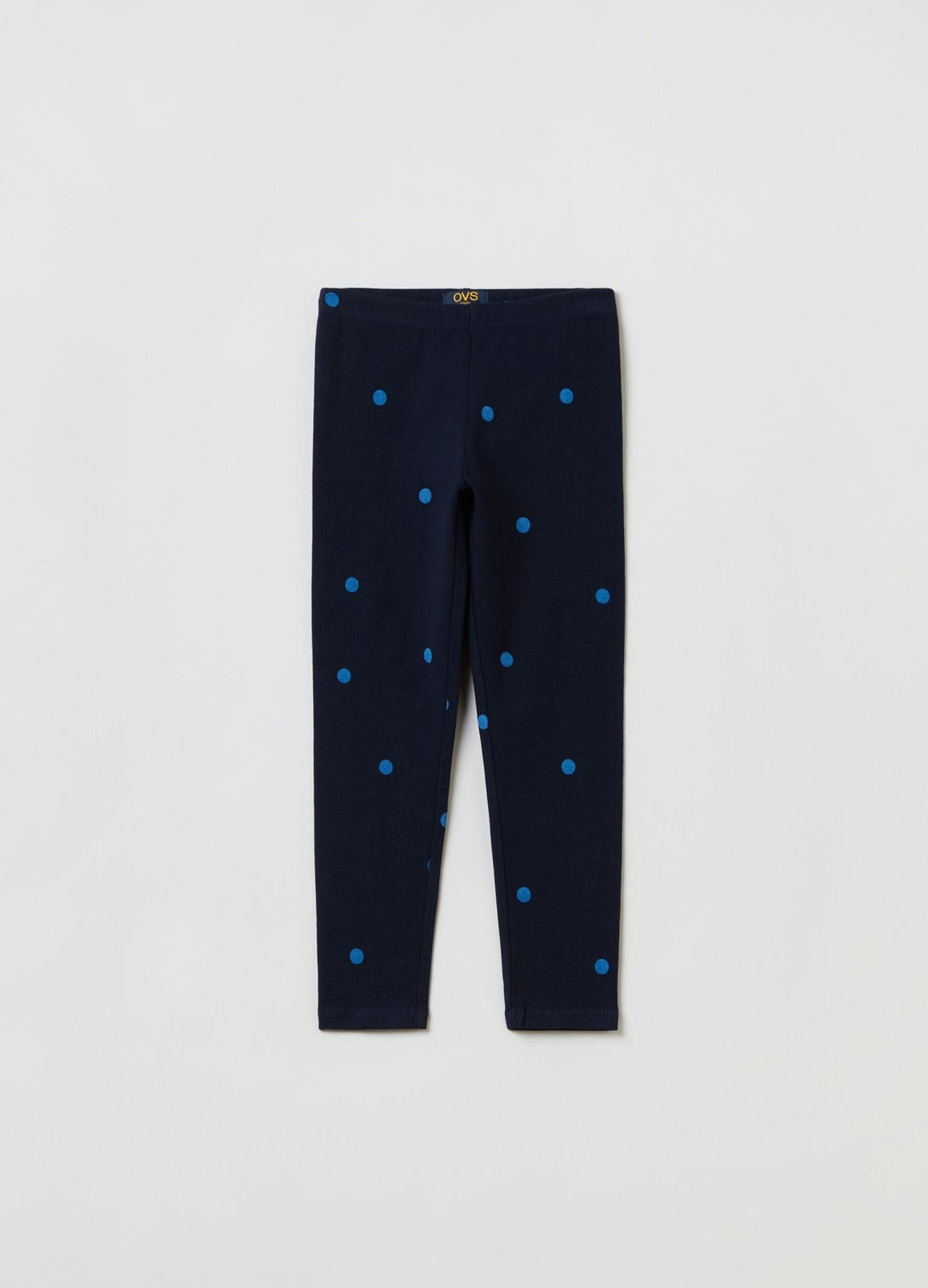 Stretch cotton leggings with all-over polka dot print. Elasticated waist.