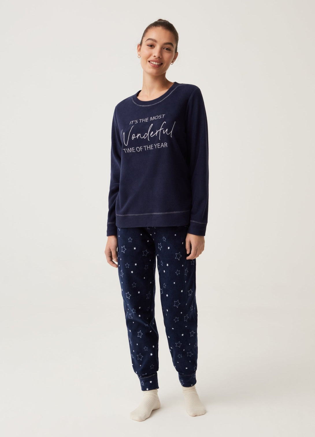 OVS Womens Embroidered And Stars Fleece Pyjamas