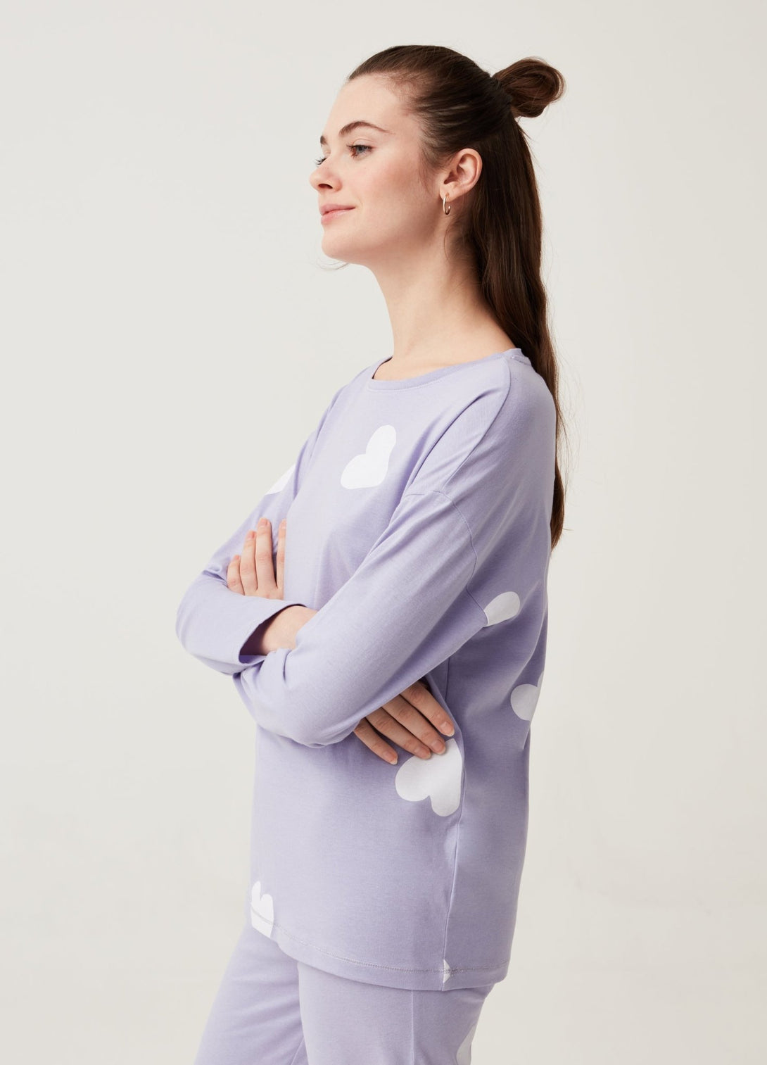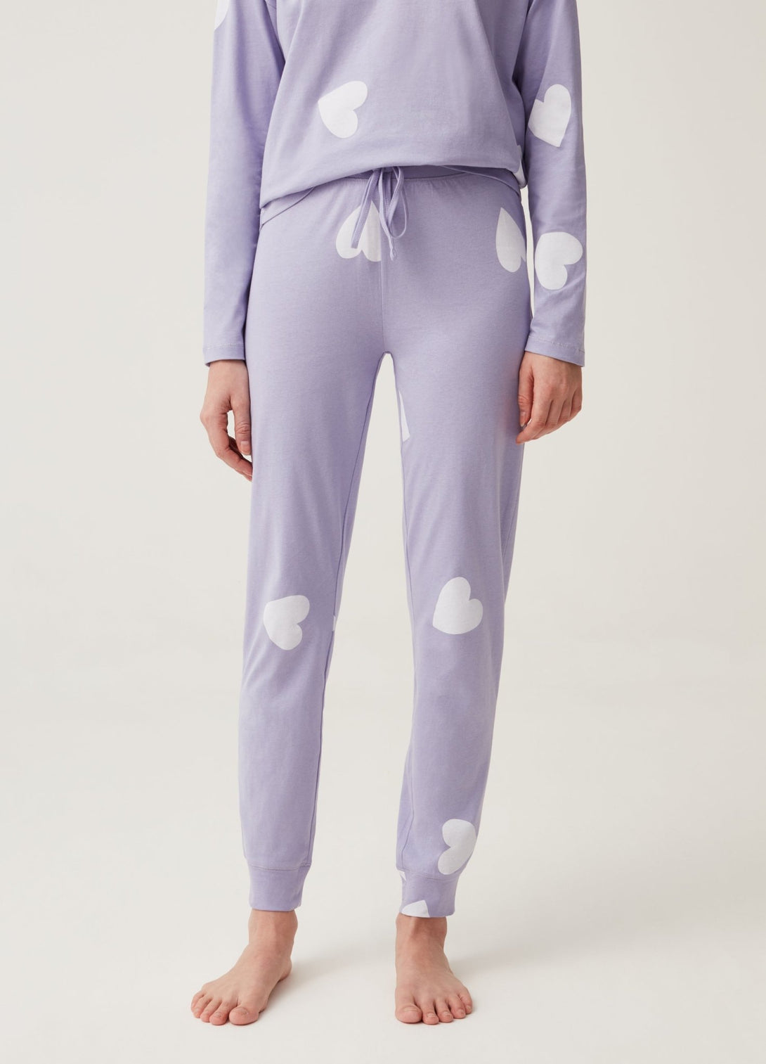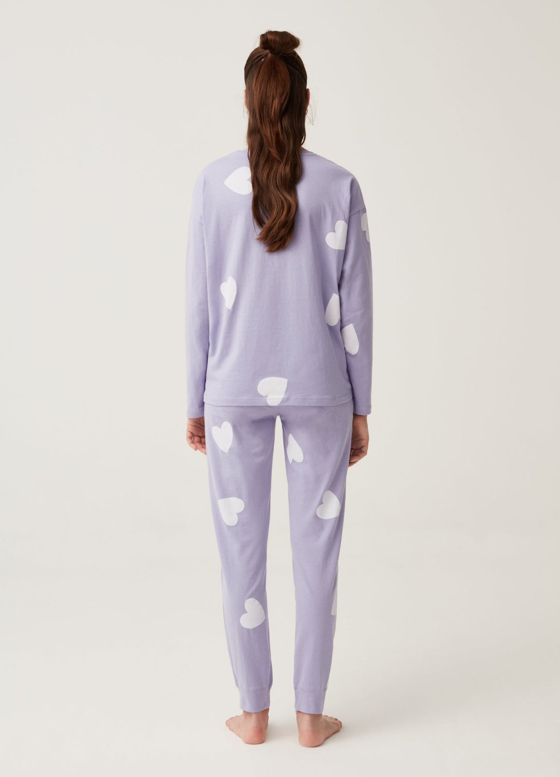 Long 100% cotton pyjamas with all-over hearts print. Top with round neck. Dropped arm openings. Bottoms with drawstring. Elasticated ankles.