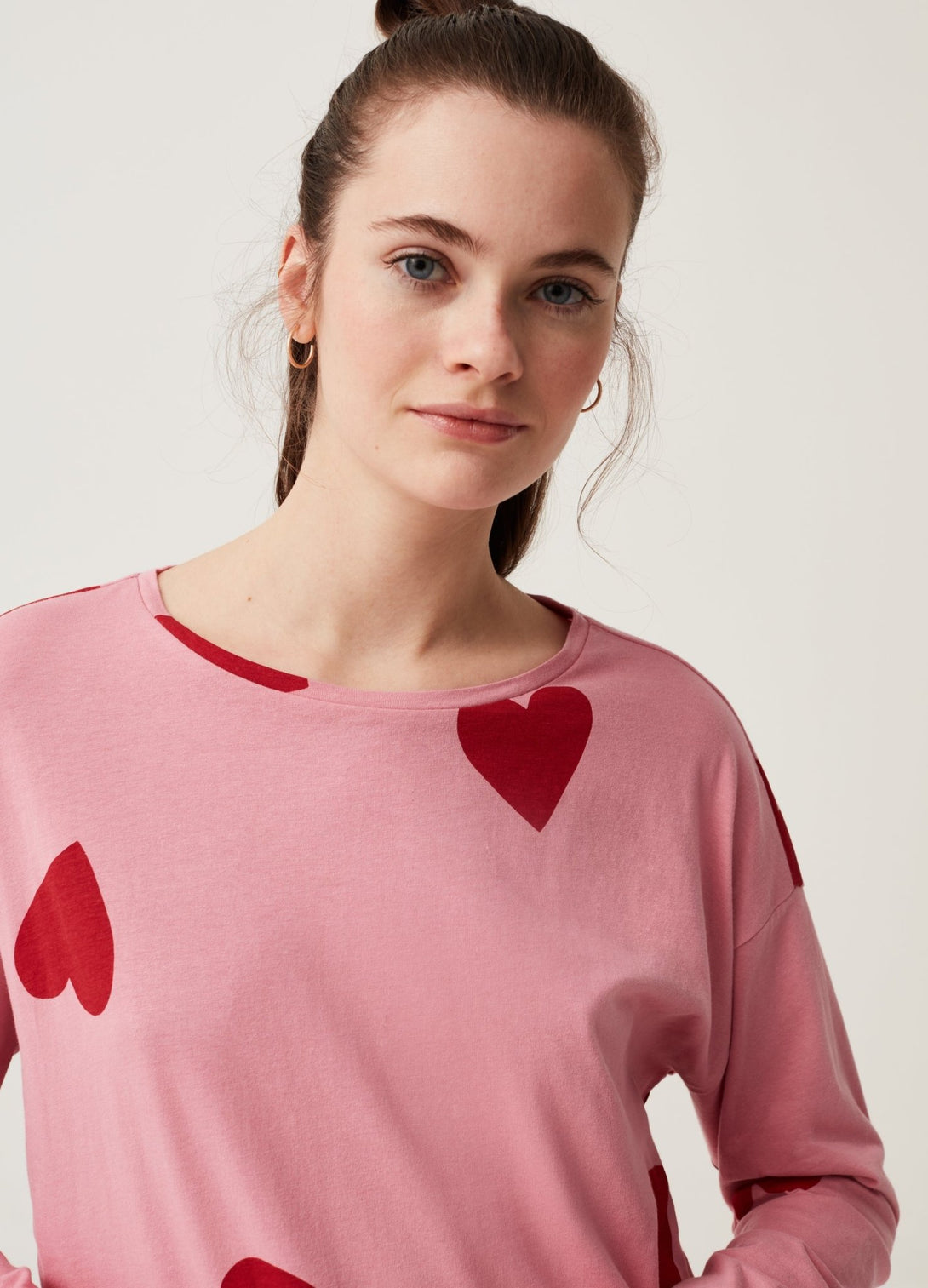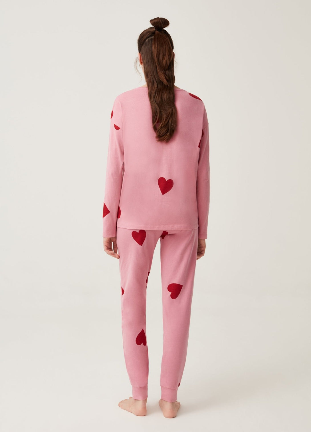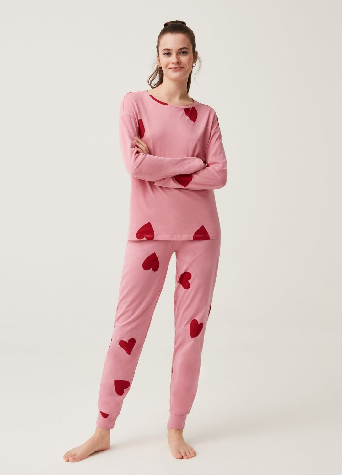 Long 100% cotton pyjamas with all-over hearts print. Top with round neck. Dropped arm openings. Bottoms with drawstring. Elasticated ankles.