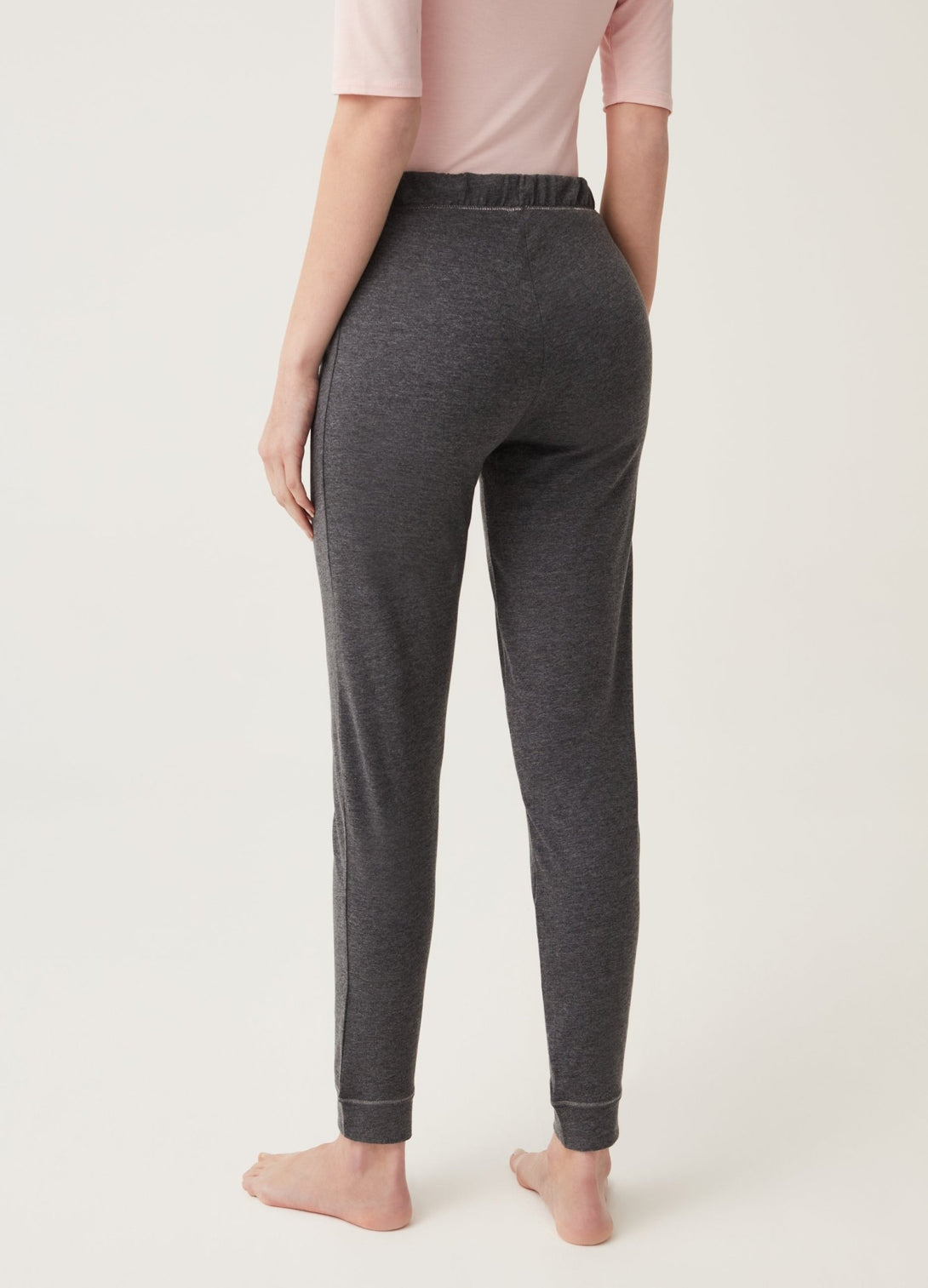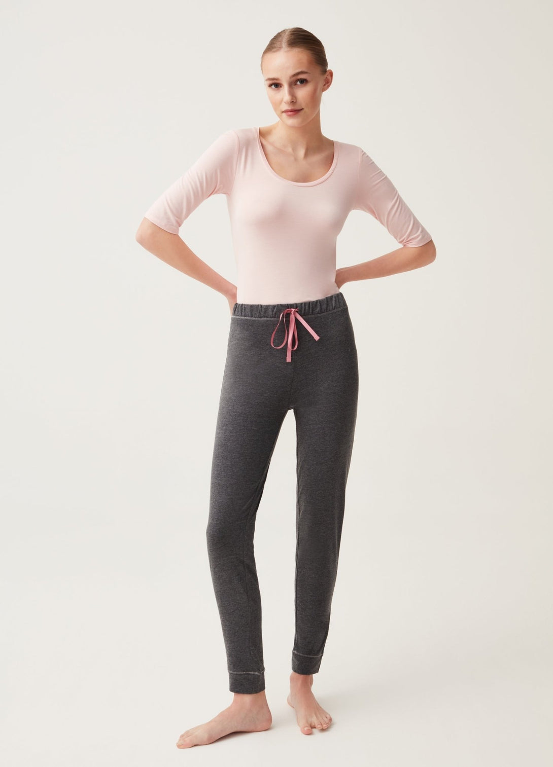 Full-length pyjama bottoms in 100% cotton mélange. Contrasting satin drawstring.