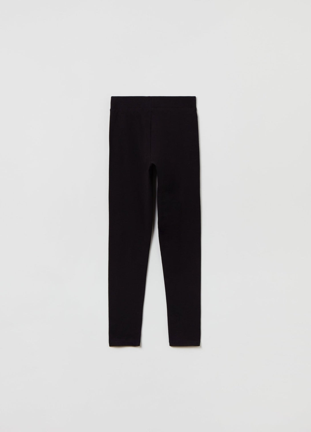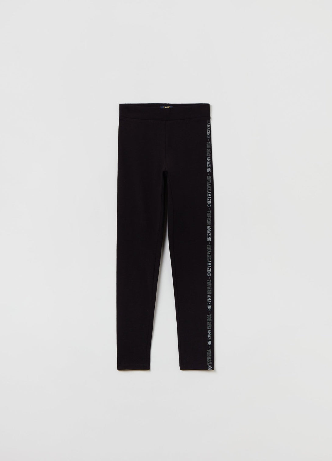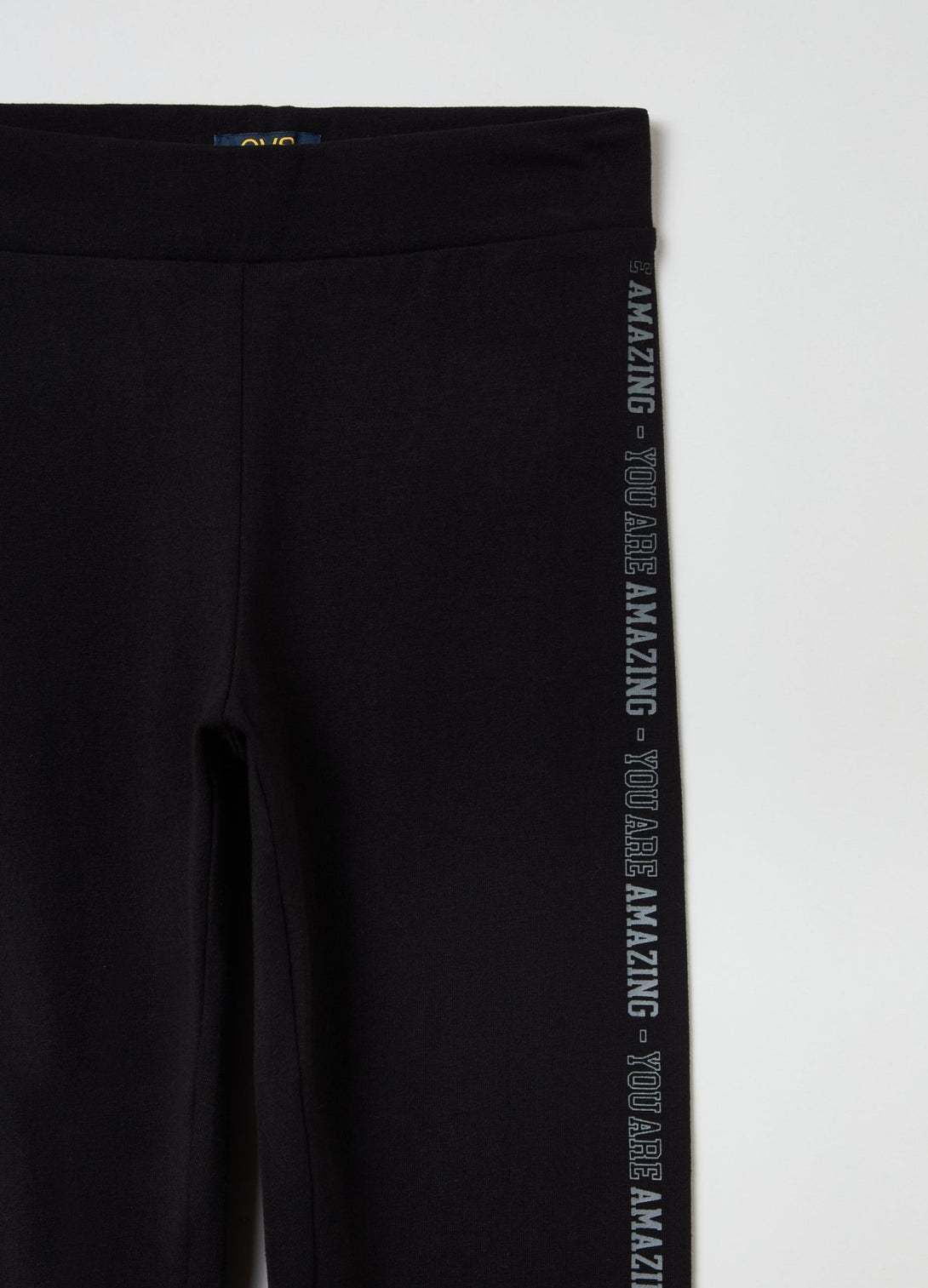 Stretch cotton leggings. Elasticated waist. Printed lettering along the sides.