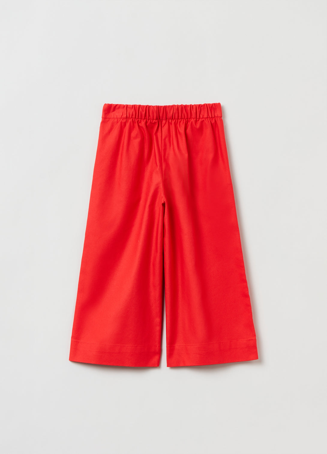 Culotte trousers in cotton and Lyocell twill. Elasticated waist band on the back and darts on the front. Two slant pockets. Buttons applied to waist.