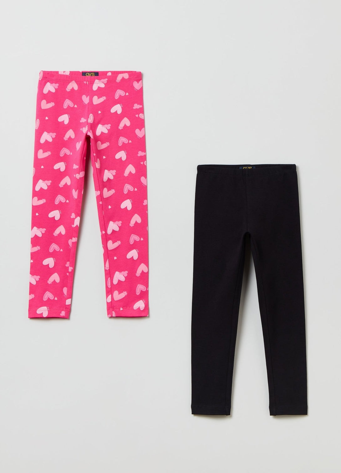 Set consisting of two pairs of leggings in stretch cotton. One pair with heart print and one solid colour pair.