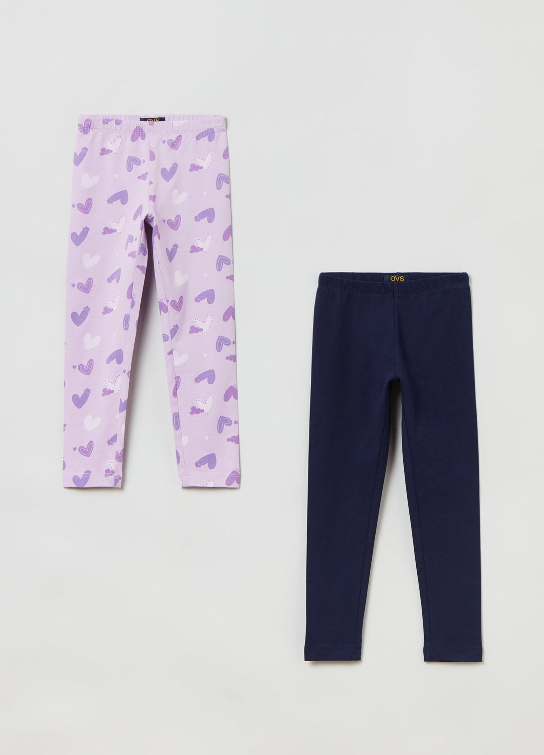 Set consisting of two pairs of leggings in stretch cotton. One pair with heart print and one solid colour pair.