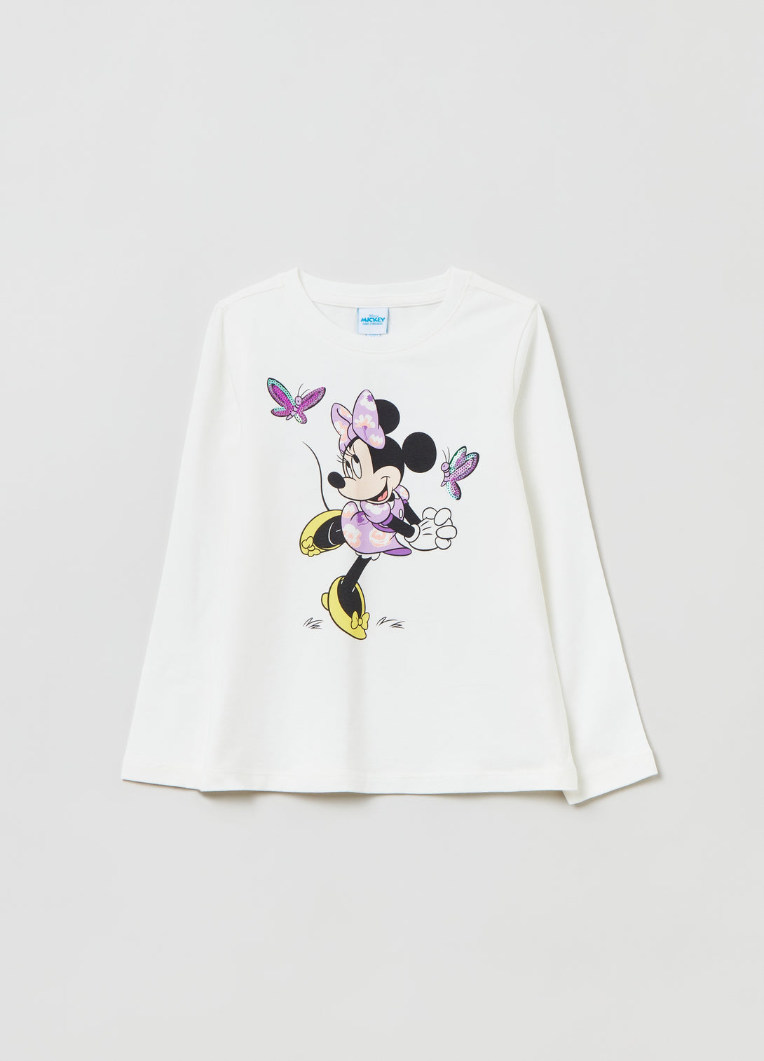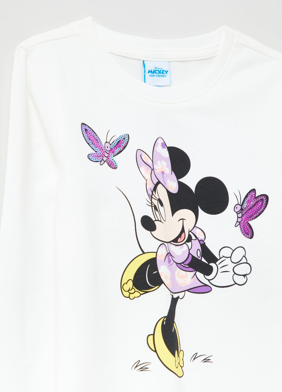 Long-sleeved T-shirt in stretch cotton. Round ribbed neck. Disney Minnie Mouse print with sequins on the front. Printed lettering on the back.