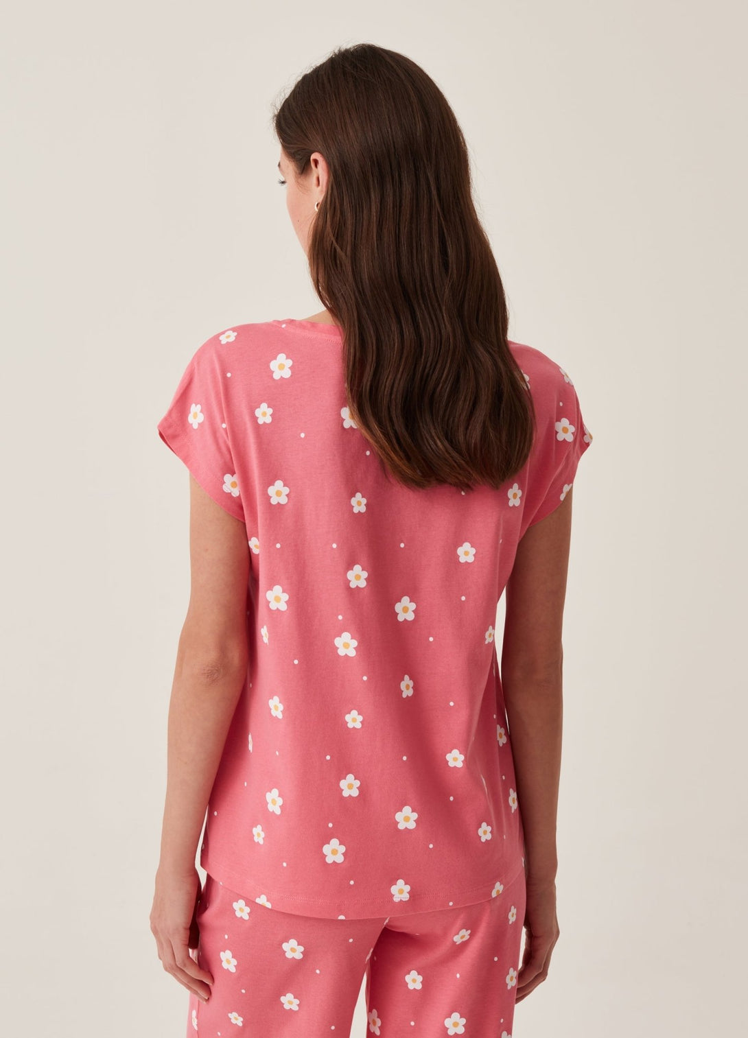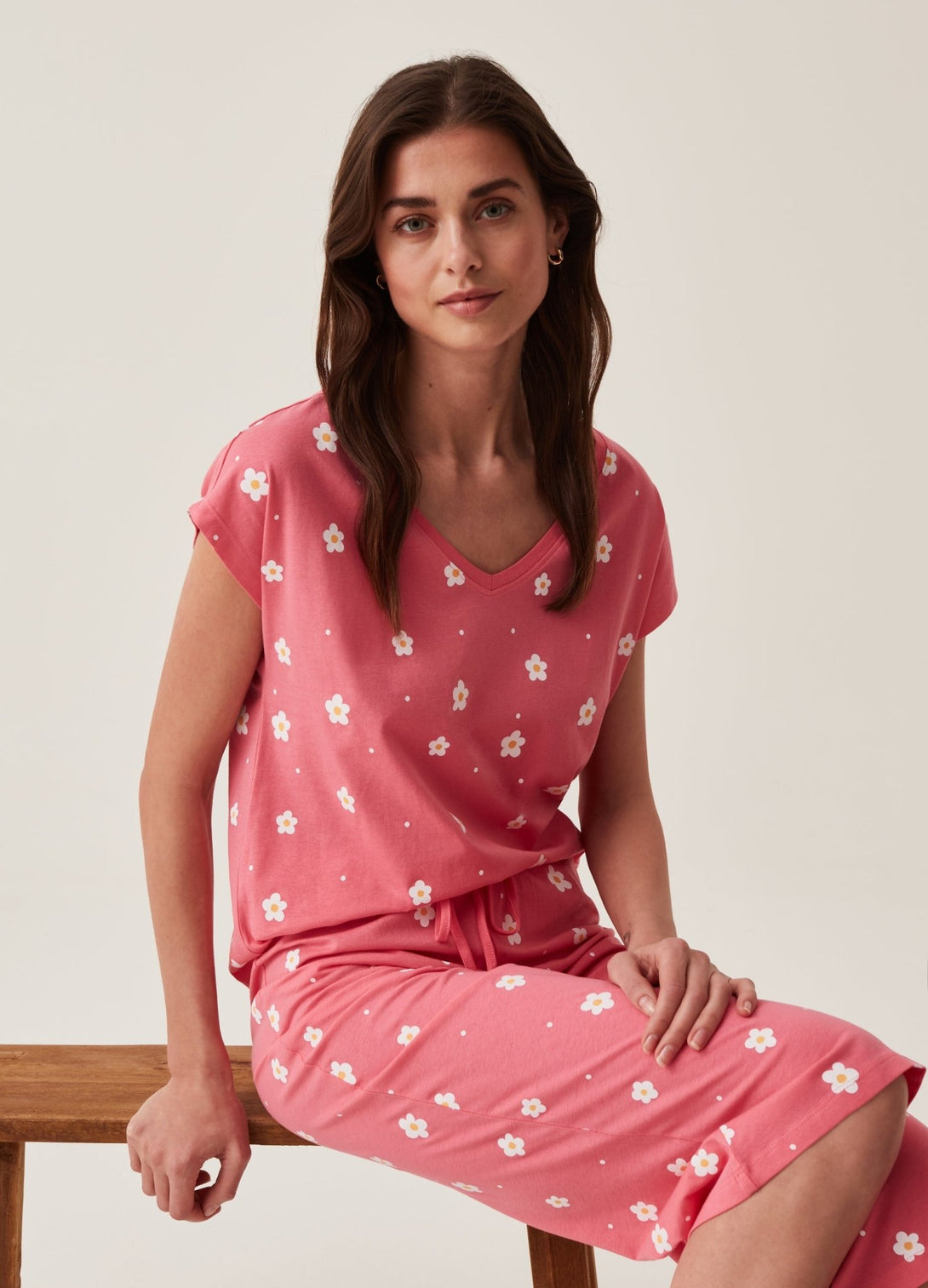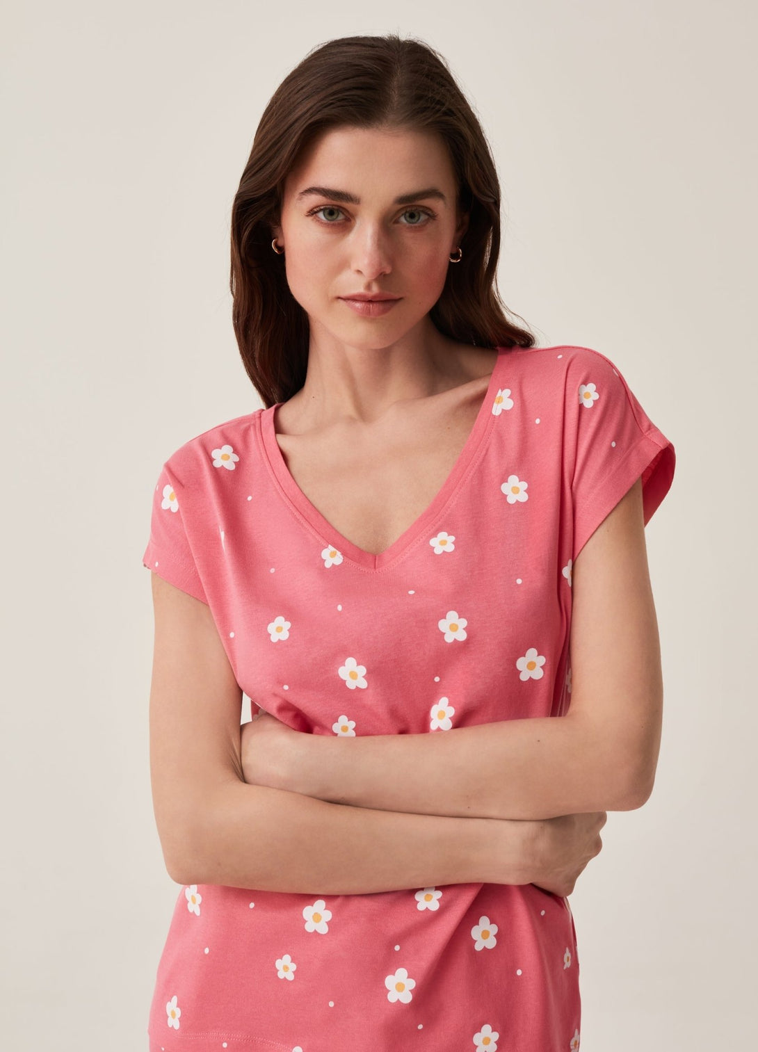 Pyjama top in 100% cotton with flower and polka dot print. V-neck. Short kimono sleeves.