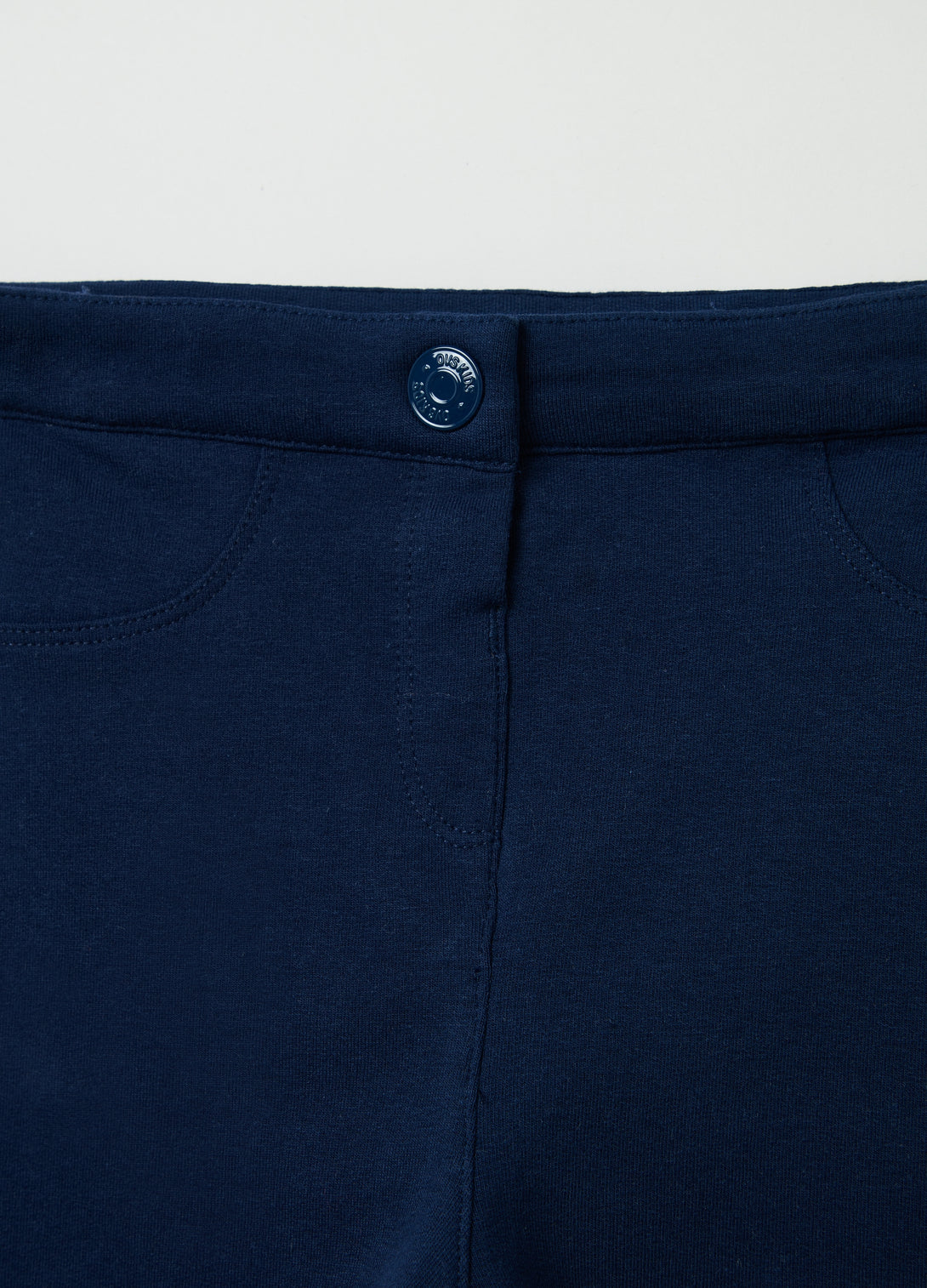 Stretch cotton treggings. Two false pockets on the front and two patch pockets on the back. Snap button fastening.