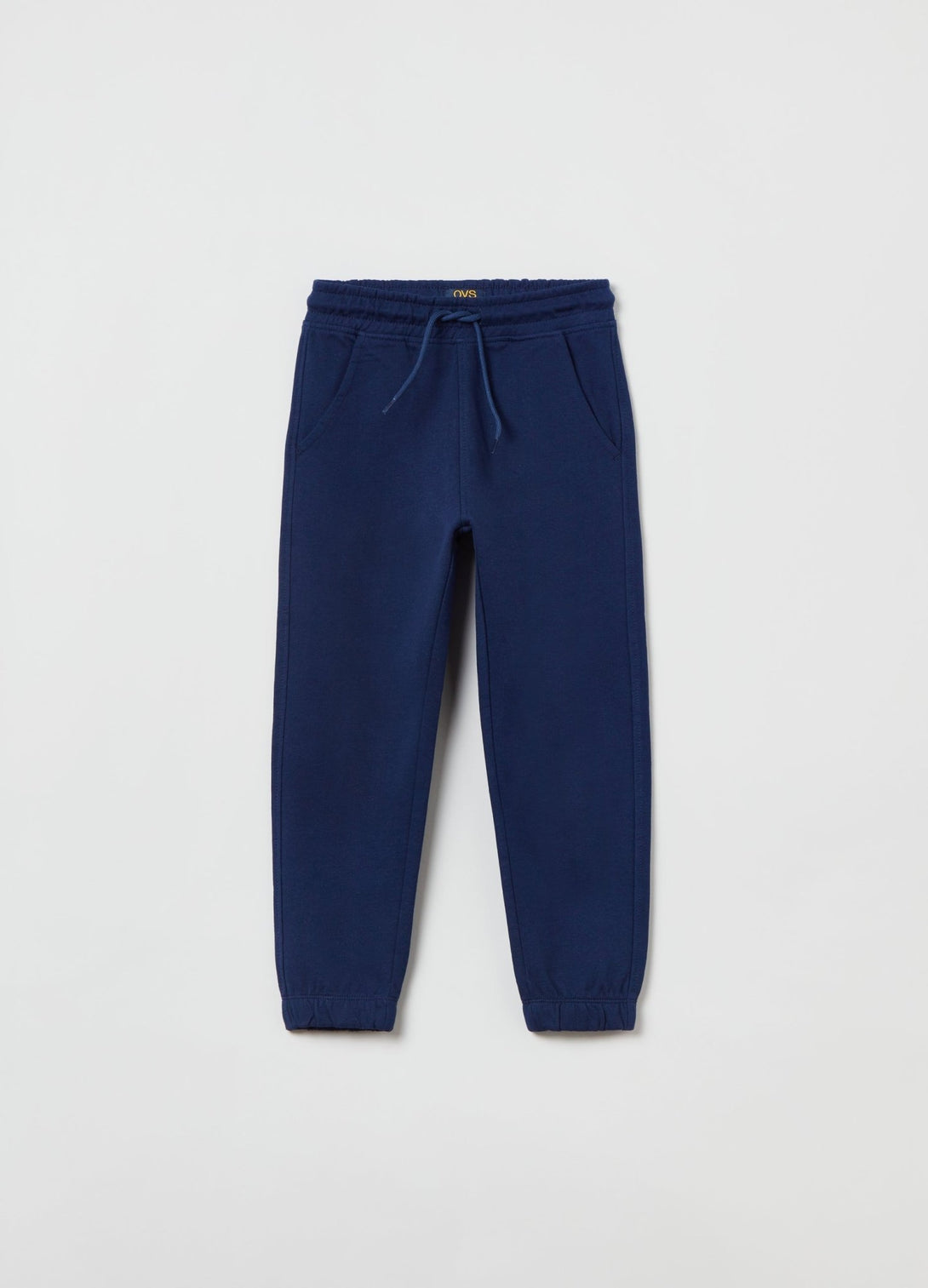 100% cotton plush joggers with drawstring. Elasticated waistband and ankles. Two front pockets.