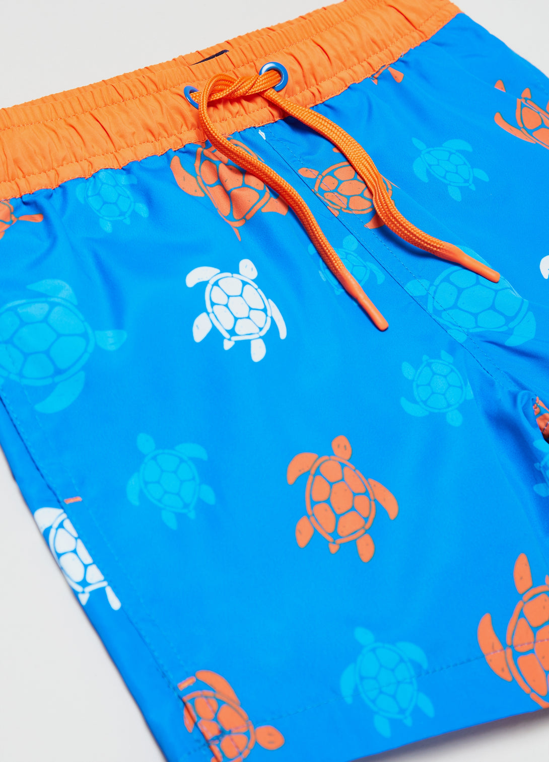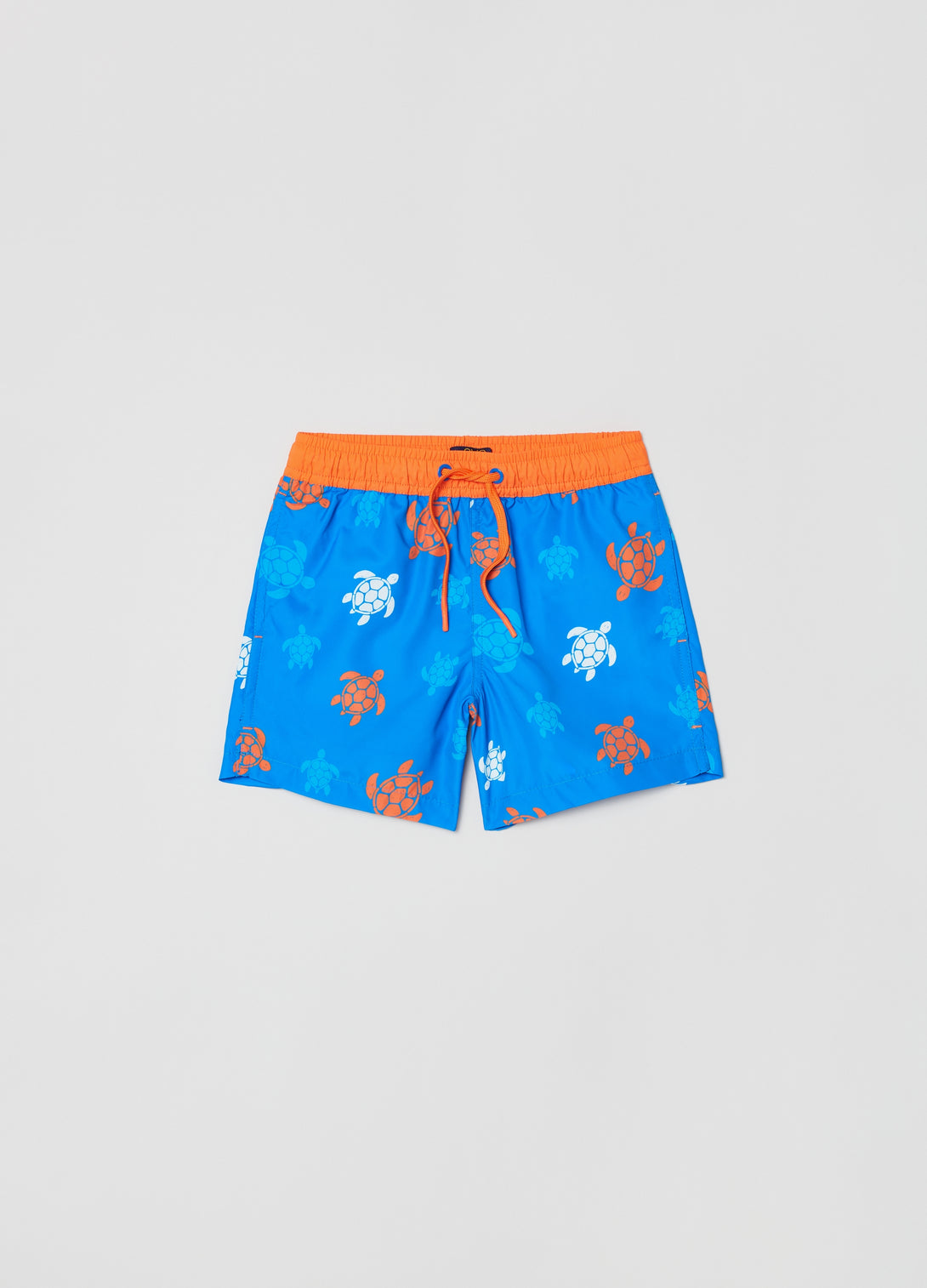 Swimming trunks with drawstring. All-over turtles print. Two vertical pockets.