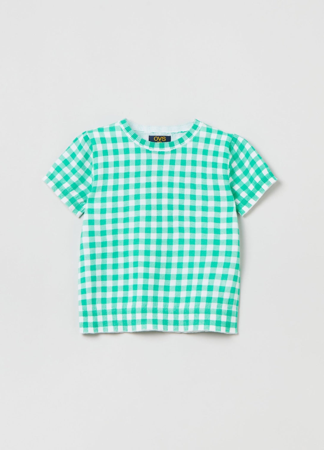100% cotton jersey T-shirt with round neck. Gingham pattern. Ribbed trims.
