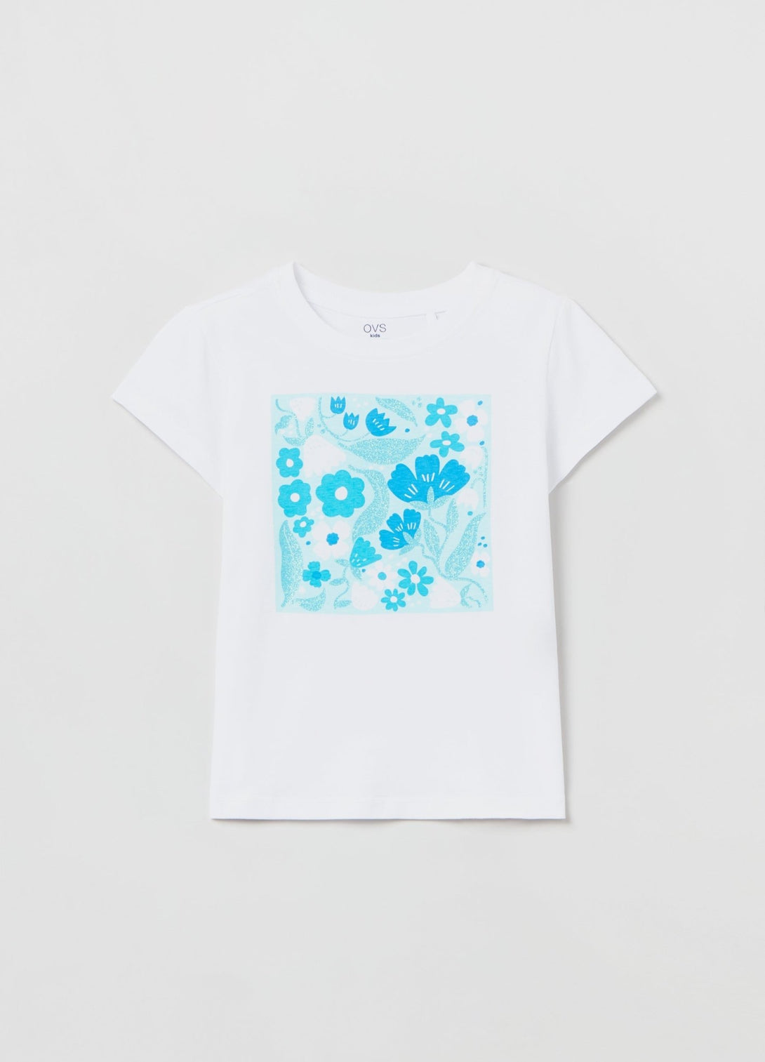 100% cotton T-shirt. Round neckline. Floral print with glitter details.