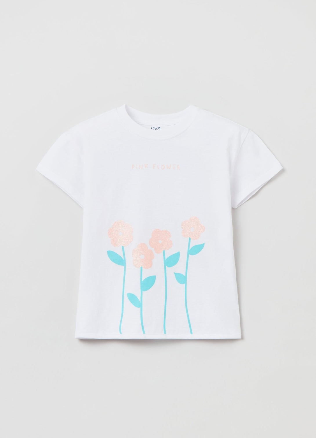 100% cotton T-shirt. Round neckline. Flower and lettering print with glitter details.
