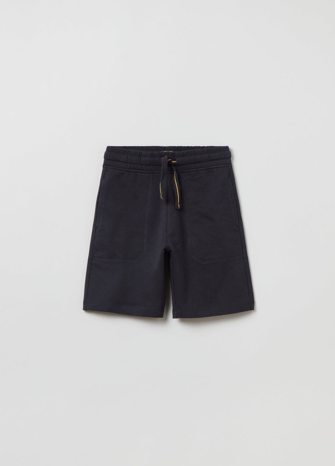Shorts in 100% cotton fleece. Elasticated waist with drawstring. Two vertical pockets and one patch pocket on the back.